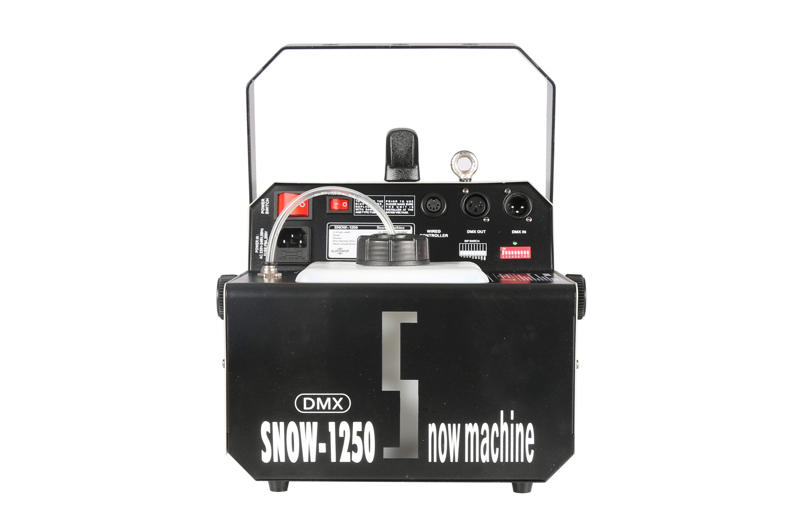 Die S-1250 ist eine Hochleistungs-Schneemaschine mit benutzerfreundlicher Steuerung. Es steht sowohl die mitgelieferte Kabelfernbedienung als auch DMX512 zur Verfügung. Die S-1250 verfügt darüber hinaus über einen praktischen High/Low Schalter über den das Gebläse reguliert wird. Dadurch kann das auf Wasser basierende, unbedenkliche Schneefluid sicher in allen Umgebungen gestreut werden kann.