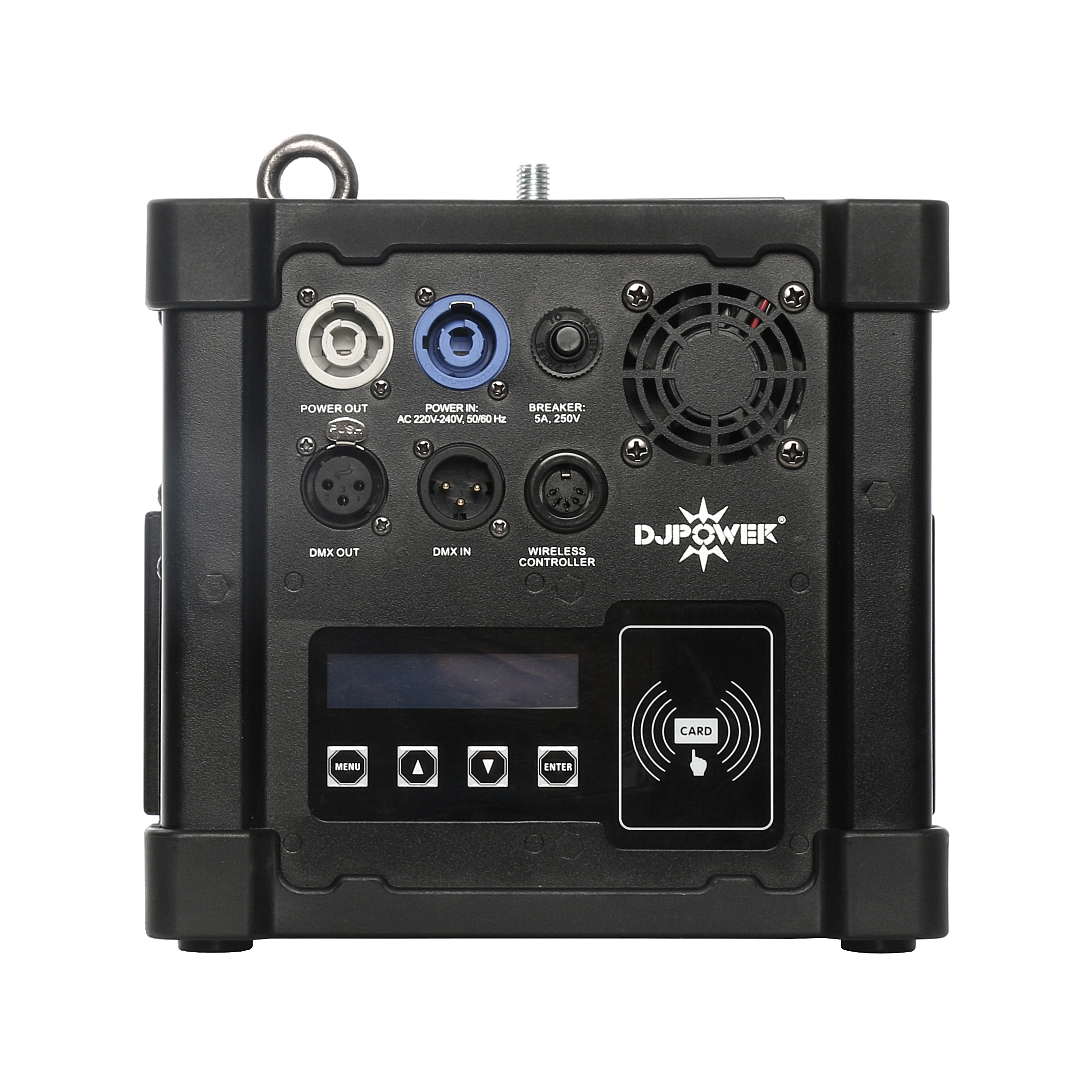 Der Spark V-2 kann mittels DMX512 (3pol XLR), oder mithilfe der bereits im Lieferumfang enthaltenen Funkfernbedienung angesteuert werden. Für die Bedienung der Spark V-2 ist außerdem keinerlei Schein erforderlich, da es sich nicht um Pyrotechnik handelt.