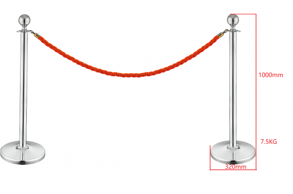 Absperrpfosten Edelstahloptik mit Kordel rot (1,5m)