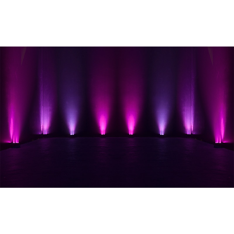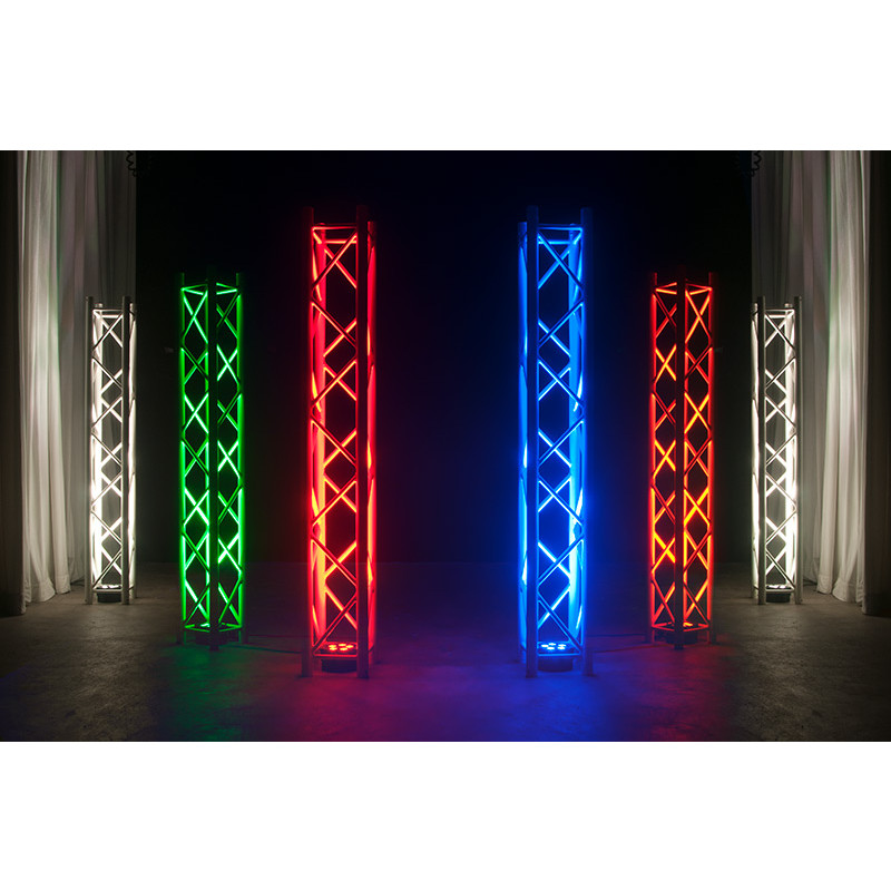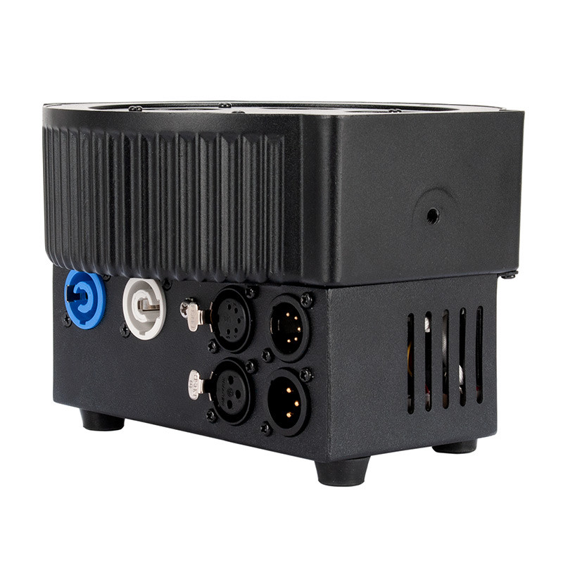 5PX HEX professional features include: 4 DMX modes (6, 7, 8, & 12 channel), 5 operational modes, 5 dimming curves, flicker free operation and a 4-Button DMX menu with digital display. Daisy-chain up to 11 units together via the fixtures built-in Locking Power In/Out connectors.
