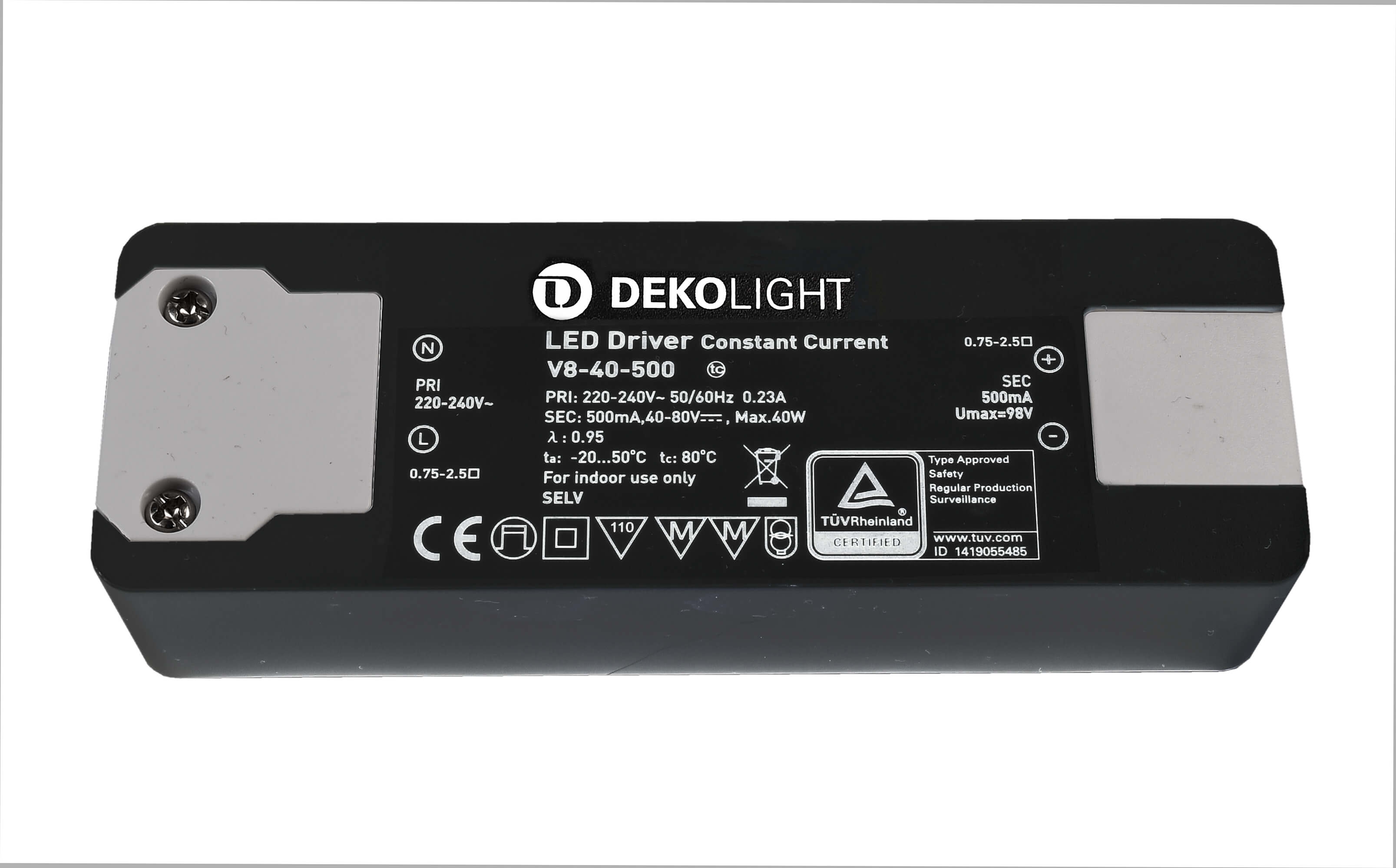 Deko-Light, Netzgerät (CC, DC), BASIC, CC, V8-40-500mA/40W, Stromkonstant, 20,0-40,0 W, Eingangsspannung: 220-240 V/AC, Ausgangsspannung: 40-80 V/DC, IP 20