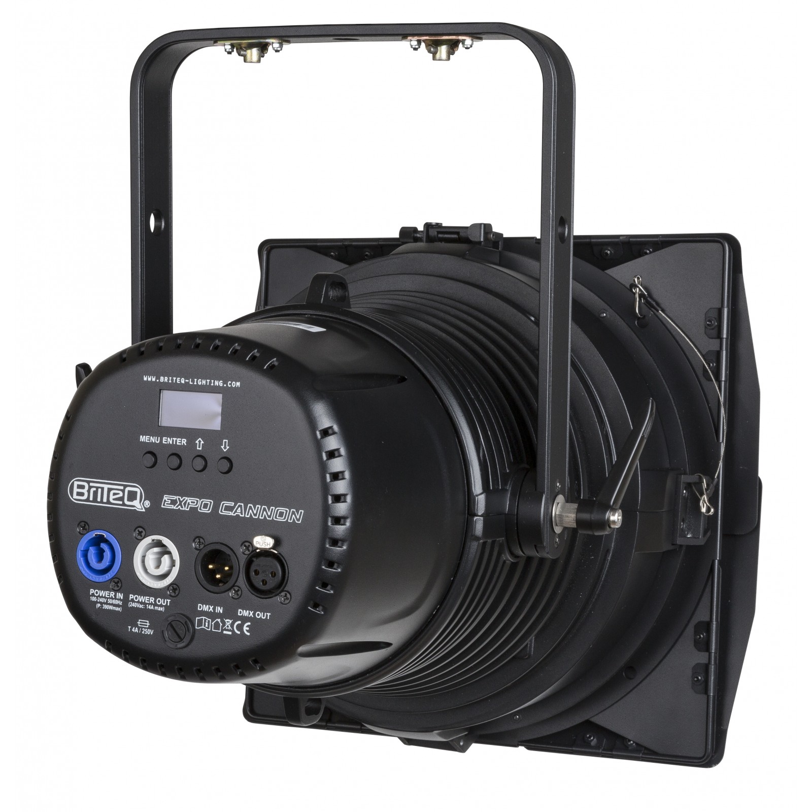 Leistungsstarker LED Scheinwerfer von Briteq mit 37 x 10 Watt CREE LEDs in kaltweiß (6500K), ideal geeignet für große Messestände und Verkaufsräume, wie z.B. Autohäuser, etc. Die 37 Hochleistungs LEDs von CREE erzeugen eine enorme Lichtleistung. Mit dem mitgelieferten Frostfilter und der Torblende können Sie diesen Scheinwerfer ideal für Ihre Bedürfnisse einrichten.