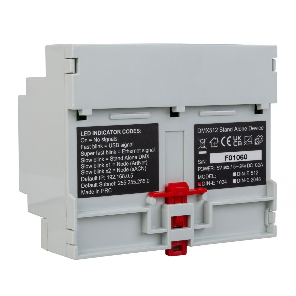 Professionelles 1024 Kanal DMX Interface und Multizonen Controller von Briteq mit Ethernet-Anschluss für Local Area Network (LAN, WLAN) zur Montage auf einer DIN-RAIL-Schiene inkl. Chromateq Software.