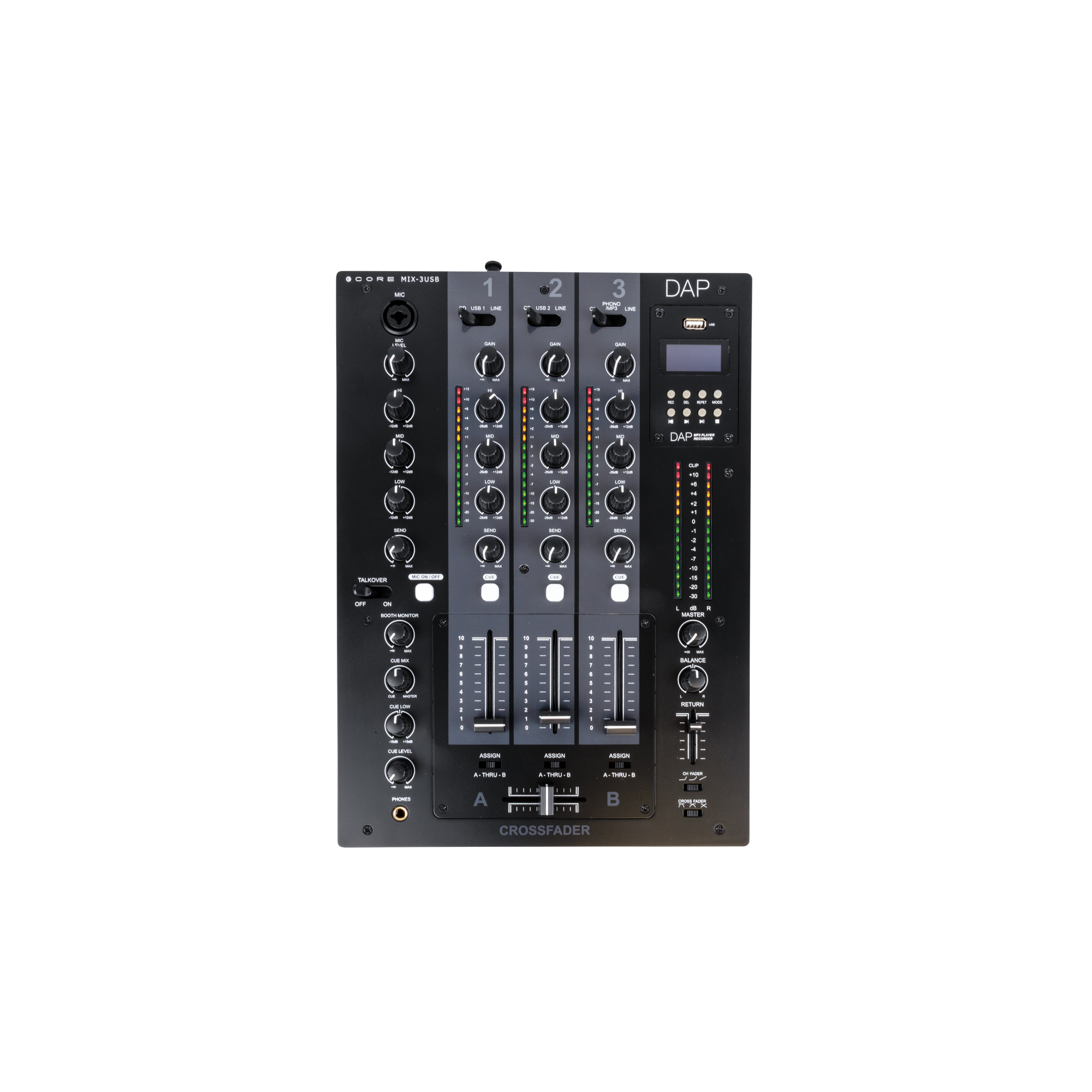 DAP CORE MIX-3 USB 3-channel DJ mixer with USB interface Dreikanal-DJ-Mixer mit USB-Schnittstelle