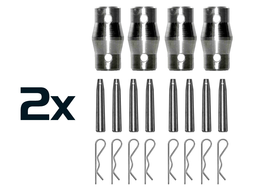 Lieferung inklusive Verbinderset, bestehend aus: 8 konischen Verbindern, 16 Bolzen und 16 Sicherungssplinten