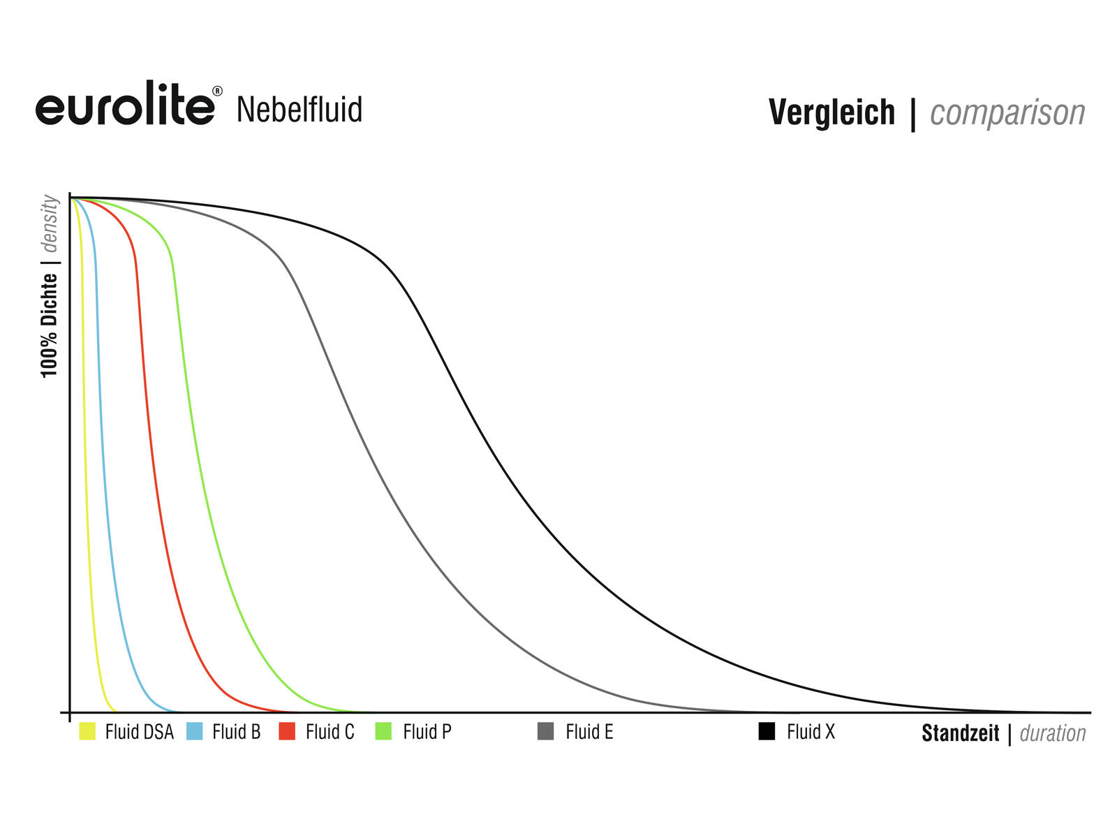 Eurolite Nebelfluid - Made in GermanyVertrauen ist wichtig, Kontrolle natürlich besser - daher prüfen wir unsere Nebelfluide nach geltenden Normen um die gesetzlichen Vorgaben wie z. B. die REACH-Verordnung zu erfüllen.Es muss Gründe geben, wenn ein Produkt seit über zwei Jahrzehnten das Vertrauen der Kunden genießt. Es muss Gründe dafür geben, dass wir in über 20 Jahren mehr als 1 Million Einheiten Nebelfluid verkauft haben. Qualität und Verlässlichkeit sind die entscheidenden Komponenten für den Erfolg. Unsere Kunden wissen, dass sie mit jedem Eurolite Fluid ein absolut hochwertiges Produkt in Händen halten. Um hochwertig zu sein, muss das Produkt nicht nur den gewünschten Nebel erzeugen; ein Fluid darf keinesfalls die Gesundheit der Menschen gefährden. Das mag nun etwas dramatisch klingen, aber Tatsache ist, dass durch unreine Flüssigkeiten die Atemwege stark angegriffen werden können. Außerdem können leicht entzündbare Flüssigkeiten ebenfalls für großen Schaden sorgen. Viele Anbieter beachten diese Gefahren leider nicht! Bei Steinigke hingegen werden die Eurolite-Fluide einem strengen Prüfverfahren unterzogen. Zudem lassen wir die Fluide von unabhängigen Stellen testen - und zwar regelmäßig. Daher können wir, im Gegensatz zu vielen anderen, garantieren, dass unsere Fluide folgende Qualitätseigenschaften aufweisen:-auf Wasserbasis-geruchsfrei-Glycerin-frei-toxikologisch unbedenklich-gesundheitlich unbedenklich-gut biologisch abbaubar-nicht entzündbarJeder, der unsere Nebelfluids verwendet, schenkt uns Vertrauen. Wir geben dieses durch rigide Kontrollen unserer Fluids zurück - so haben beide Seiten etwas davon.Rauch der sich zügig in Luft auflöst!Der Einsatz von Nebel auf der Bühne, im Studio oder auf Messen verursacht sicherlich tolle Effekte. Doch es kommt auch vor, dass sich der Rauch nicht in nichts auflöst, sondern sehr lange im Raum steht und somit letztlich sehr störend wirkt. An diesem Punkt wird das neue DSA-Fluid auf den Plan gerufen. Im Gegensatz zum allgemeinen Standard ist der enstehende Nebel sehr kurzlebig und erlaubt somit einen pointierten und präzisieren Einsatz. Eine wahrlich willkommene Alternative zu den ausdauernden Nebelschwaden. Kurz und gut eben!
