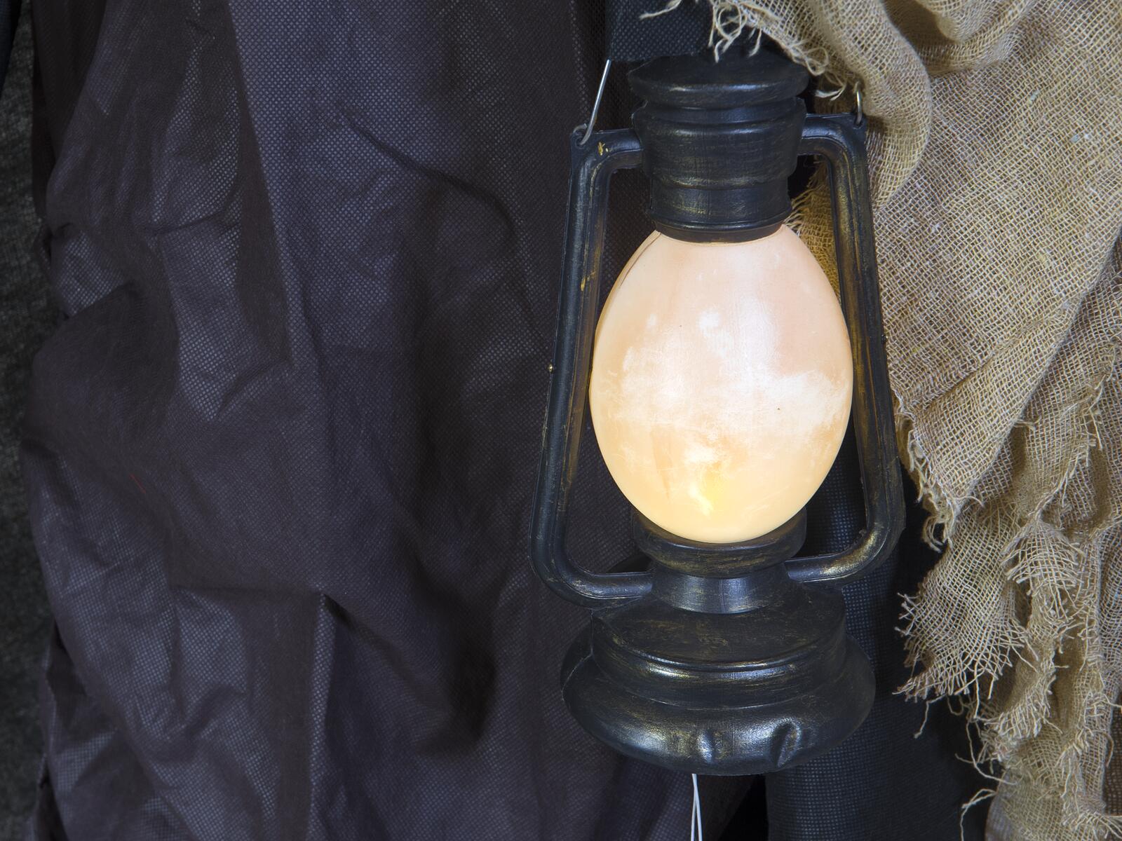 Mit dem Schattengeist von Europalms verleihen Sie Ihrer Halloween-Dekoration eine düstere und unheilvolle Atmosphäre.Die Deko-Figur stellt einen gesichtslosen Geist dar, der in ein düsteres, bodenlanges Gewand gehüllt ist. Über seinen Kopf und das Gewand fällt ein schäbiger, ausgefranster Umhang, der sein unheimliches Aussehen noch verstärkt. Besonders faszinierend ist jedoch der kaleidoskopische Effekt, der bei Aktivierung der Animation anstelle eines Gesichts erscheint. Dieser mystische Effekt zieht alle Blicke auf sich und lässt die Figur in einem unheilvollen Licht erstrahlen, während ein unheimlicher Geisterbahnsound ertönt und die Grusel-Atmosphäre perfekt ergänzt.Eine zusätzliche Interaktionsmöglichkeit bietet die im Lieferumfang enthaltene Laterne. Diese kann von "Gevatter Tod" in der Hand gehalten werden oder einfach neben der Figur platziert werden. Die Laterne kann entweder über einen Drucktaster kurzzeitig erhellt werden oder durch einen Schalter am Batteriefach in den Dauerbetrieb geschaltet werden.Die Animation der Figur selbst wird per integriertem Mikrofon oder kabelgebundener manueller Steuerung aktiviert.