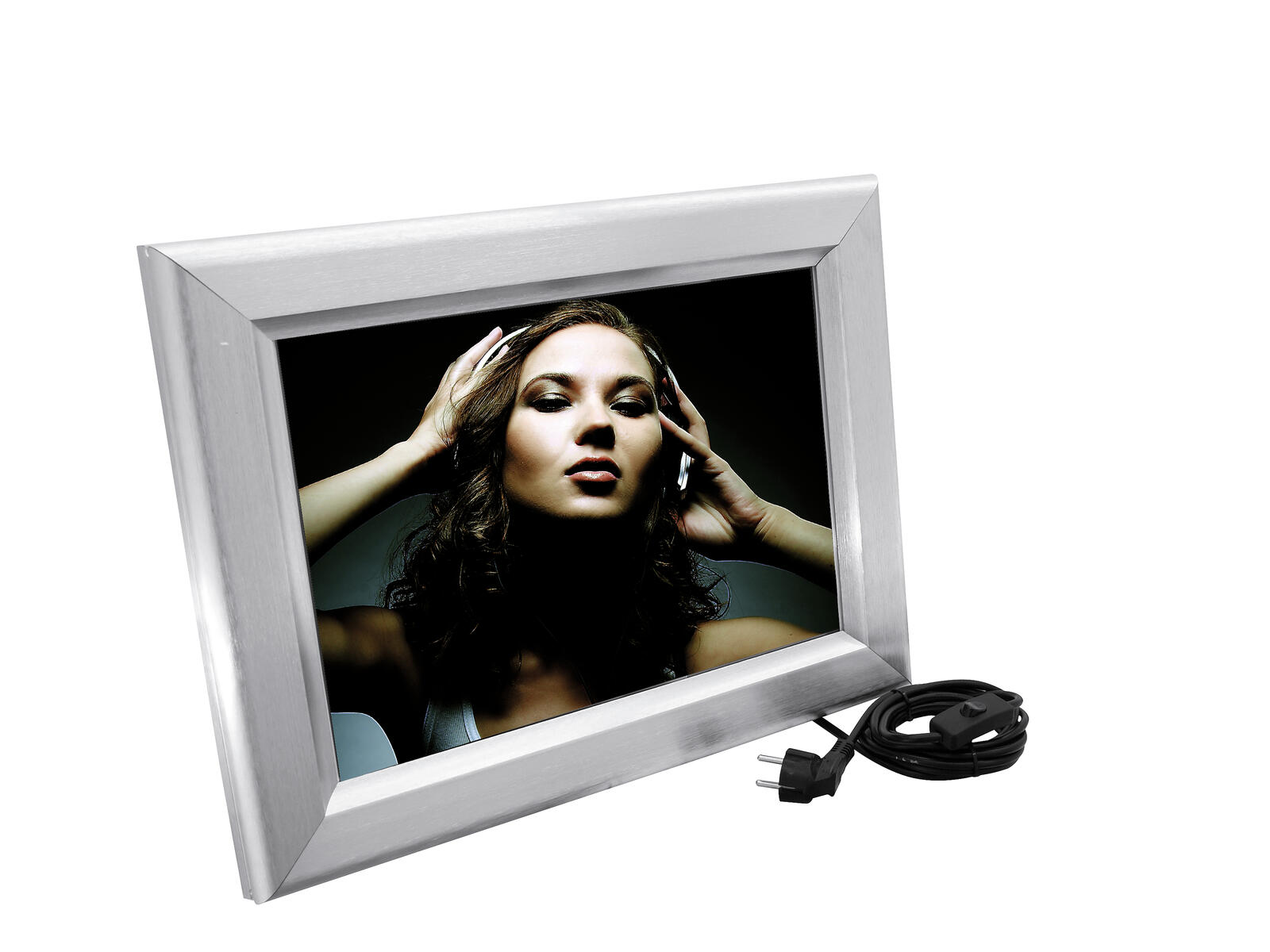 Licht an!Lassen Sie Ihre Plakate strahlen. Wie? Mit unserer beleuchteten Reklamewand. Nur wenige Handgriffe sind nötig, um Ihre Poster oder Plakate zu wechseln. Sie müssen nur den Rahmen nach außen klappen, das Plakat unter die transparente Kunststoffscheibe legen und den Rahmen wieder zuklappen. Licht an! Fertig! Der Klapprahmen ist ein Klassiker der Plakatwerbung. Mit der zusätzlichen Beleuchtung kommt Ihr Poster oder Plakat nun noch besser zur Geltung. Durch den edlen gebürsteten Alu-Rahmen wird Ihre Werbung optimal präsentiert. Die Acrylglasplatte schützt Ihre Plakate vor Verunreinigungen und Verbleichen. Dabei lassen sich die Rahmen einfach an der Wand befestigen und können sowohl horizontal als auch vertikal aufgehängt werden. Zudem sorgt die hochwertige Verarbeitung sorgt dafür, dass die Klemmen auch nach häufigem Öffnen noch zuverlässig schließen. Die Reklamewand ist auch in A2, A1, A0 und einer Größe von 2 m² erhältlich.