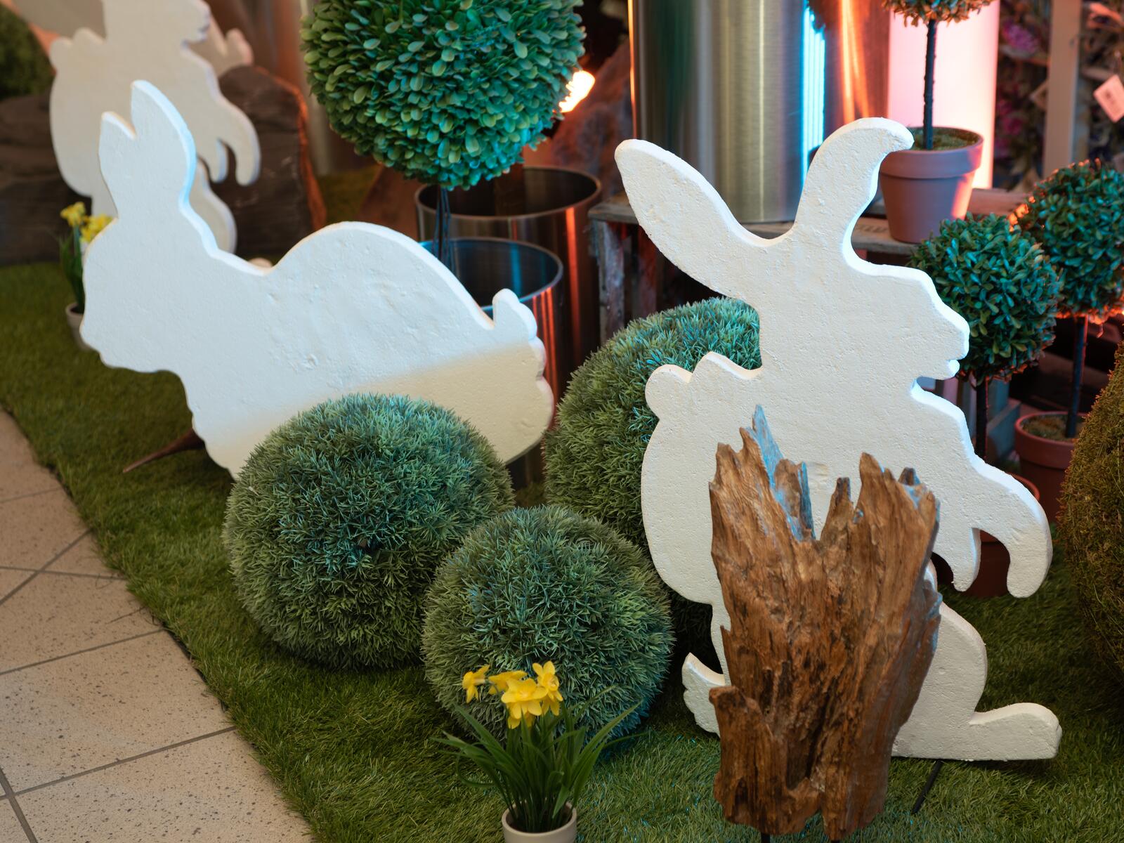 Verleihen Sie mit unserer niedlichen Hasen-Silhouette Ihrem Zuhause einen fröhlichen Hauch des Frühlings.Das Motiv der leichten Styropor-Silhouette ist ein bezaubernder "Hoppel-Hase", der mit seinem bezaubernden Charakter zu einem einladenden Blickfang Ihrer Frühlings- und Sommerdekoration wird. Die Silhouette ist leicht zu handhaben und kann überall mühelos platziert werden - egal ob auf Ihrem Tisch, am Fenster oder im Garten.Mit wenigen einfachen Handgriffen lässt sich die Silhouette durch die im Lieferumfang enthaltenen Kunststoffspieße auch im Freien platzieren.