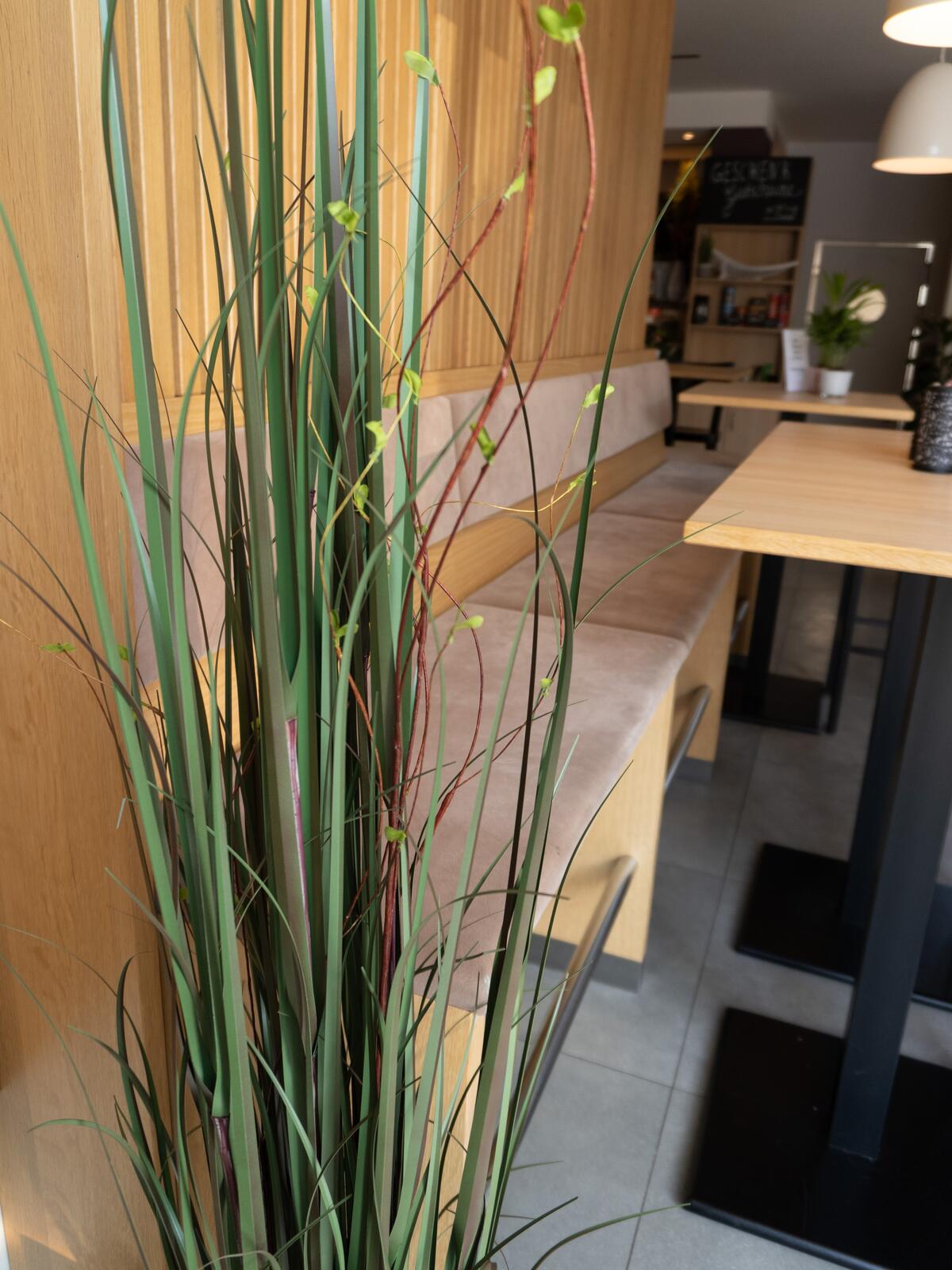 - Mit dunkelgrünfarbenen naturgetreuen Blättern