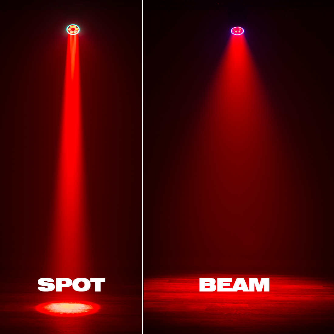 • Motorized rotating lens, that allows the unit to output a narrow beam of 4°, a wide wash of 55°, and a kaleidoscopic multi-beam effect