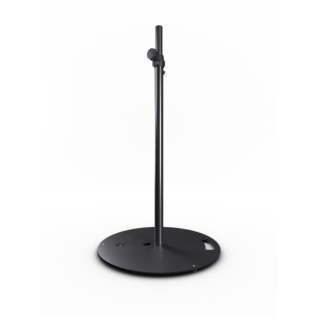 Elegantes Lautsprecherstativ von HILEC mit runder Bodenplatte aus Stahl.