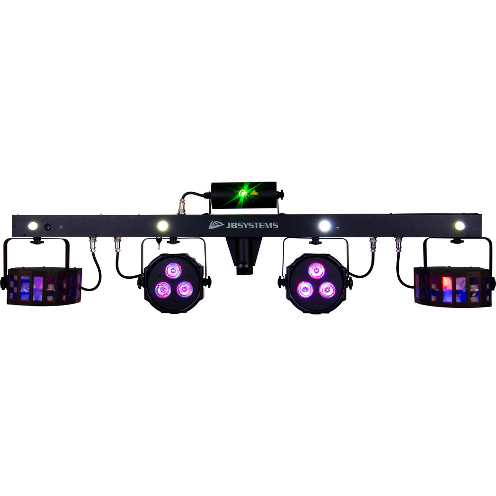 Die Party Bar von JB Systems ist eine kompakte und leistungsstarke Lichteffekt Bar mit tollen Effekten. Das Set besteht aus: 2 x LED RGB Derbys 2 x LED Scheinwerfer 3x9W RGB/15 1 x 2-Farb Laser (100mW rot/ 30mW grün Laser Klasse 3R) 4 x 3 Watt LED Flash LEDs 1 x Transporttasche 1 x IR Controller