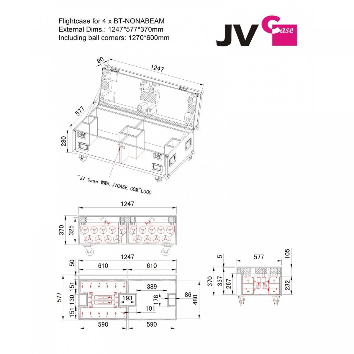 Profesionelles Flightcase für 4 Stück BRITEQ BT-NONABEAM und Zubehör.