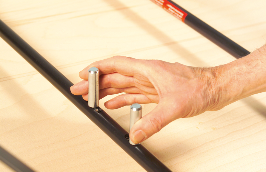 Auf der Unterseite des Podestes befindet sich der Mechanismus zur Einstellung der Höhe. Durch Zusammendrücken der beiden Griffe lässt sich die Schere in die gewünschte Höhe einrasten.