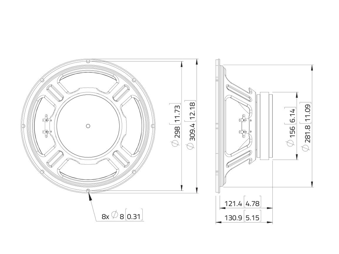 150 W AES, 8 Ohm, 98 dB, 60 - 10000 Hz