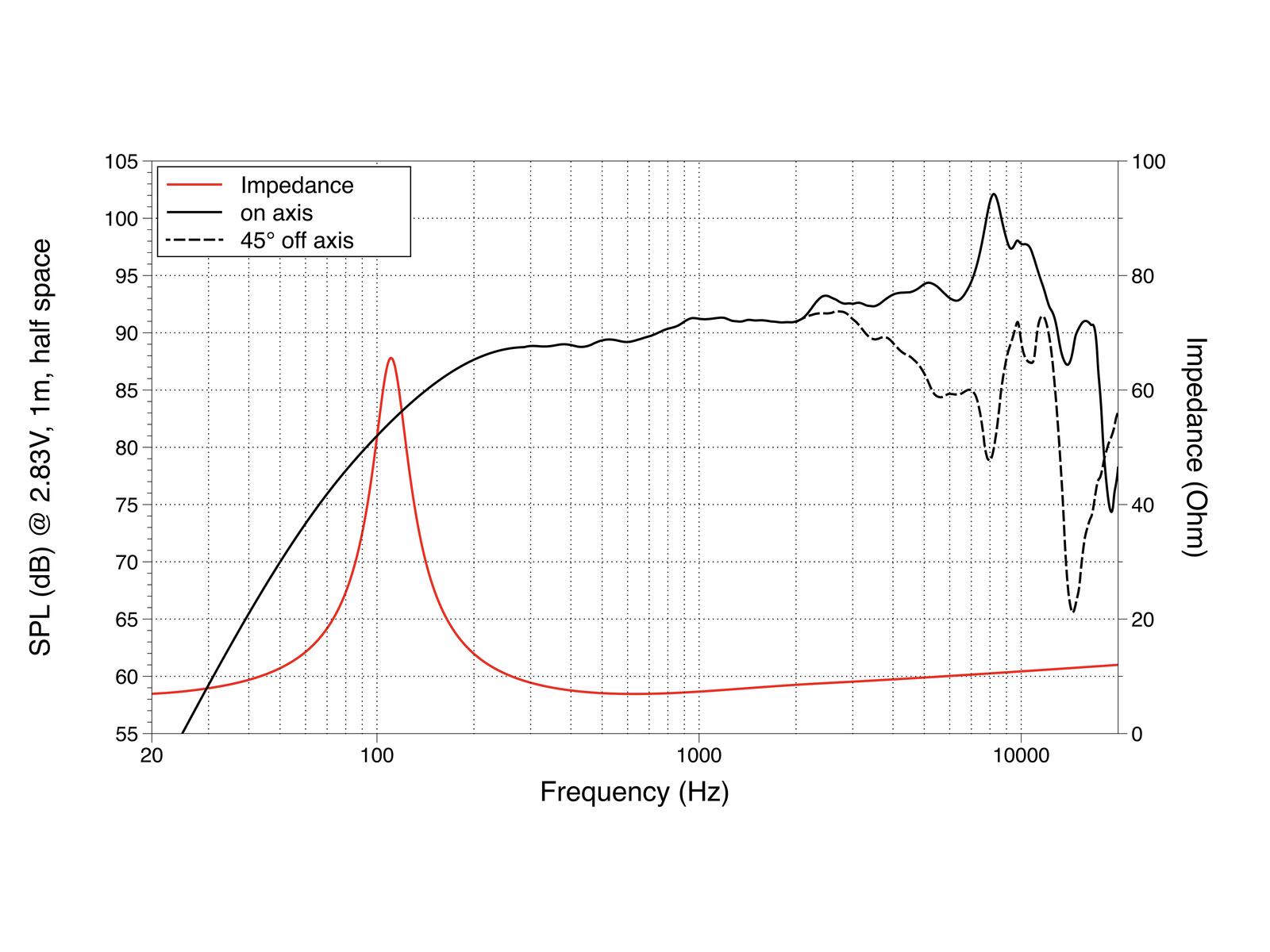 40 W AES, 8 Ohm, 91 dB, 110 - 18000 Hz
