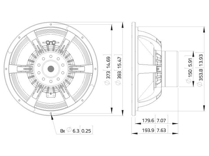 1500 W AES, 8 Ohm, 95,5 dB, 40 - 1000 Hz