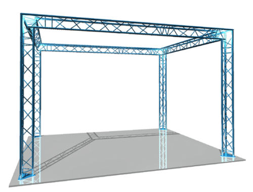 1 m Alu-4-Punkttraverse 50 mm Hauptrohr, 29 cm Seitenlänge, konische Verbinder - weitere Ausführungen lieferbar: - Traversen mit konischen Schnellverbindern - Traversen mit Hülsenverbindern und Druckgussendplatte: Leitertraversen 2-Punkt alle Größen 3-Punkt-Traversen alle Größen 4-Punkt-Traversen alle Größen Kreise, Eckstücke, Kreuze Sonderkonstruktionen Anschlagmittel Lifte - unter Verwendung von Eckstücken und weiteren Traversenbauteilen lassen sich beliebige Messestände (s. Bild) und Bühnenkonstruktionen erstellen, auch ideal zum Bau großflächiger Werbeanlagen als Spannrahmen einsetzbar