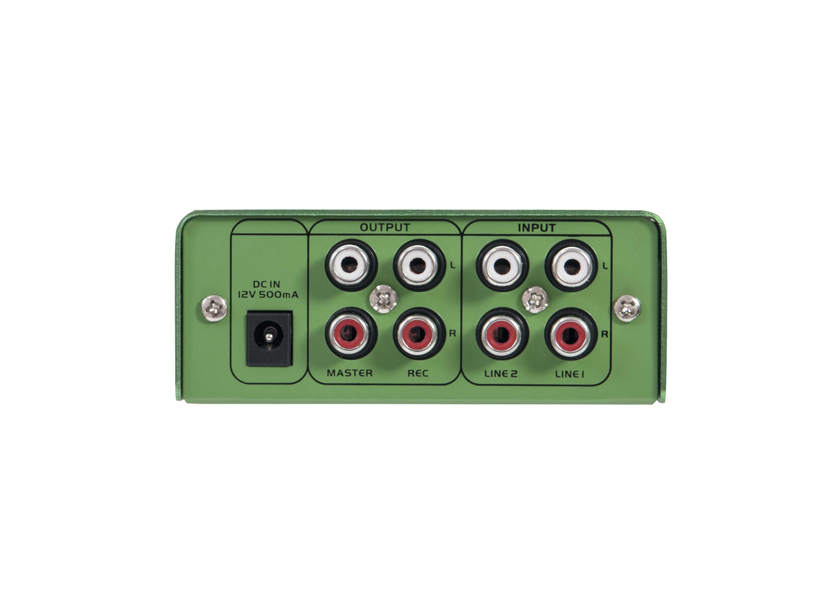 - Regelbarer Masterausgang und Record-Ausgang über Cinchbuchsen