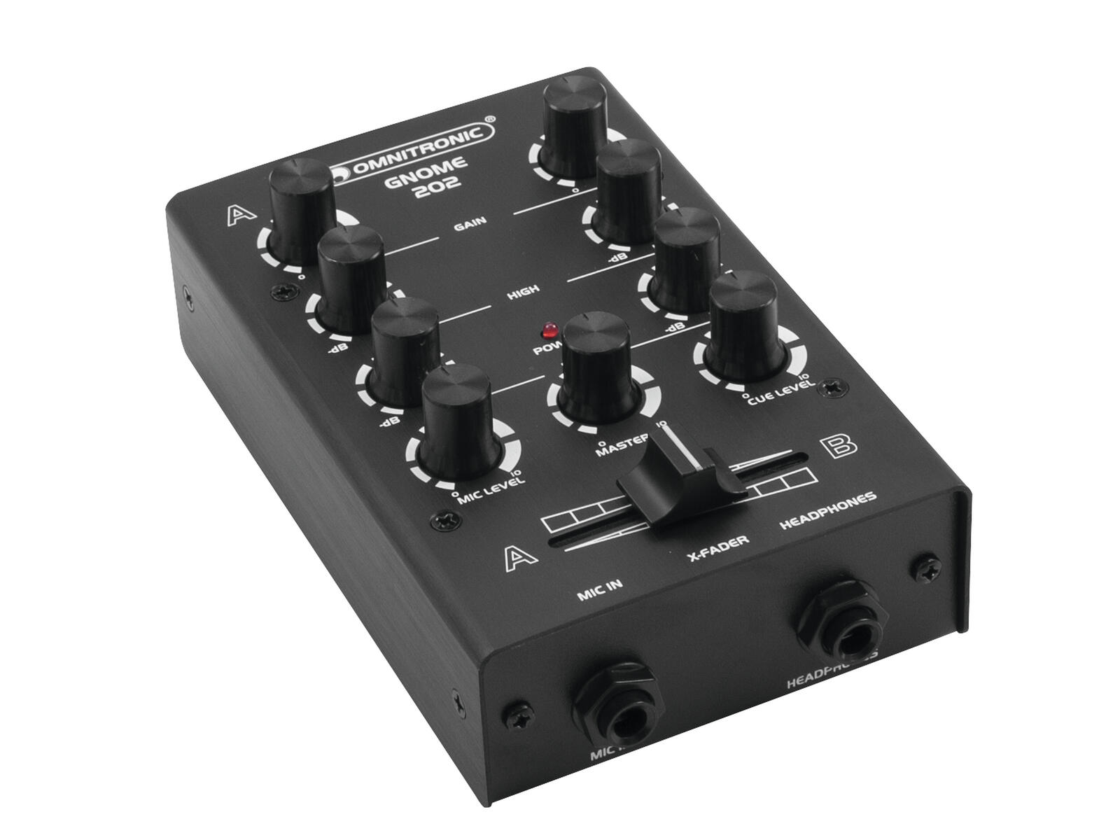 Der Omnitronic GNOME ist ein mobiles DJ-Mischpult im Miniatur-Format mit allen notwendigen Funktionen für den spontanen Mix von zwei Klangquellen (MP3-Player, Smartphone, Laptop etc.). Hierfür bietet das Pult zwei Stereo-Line-Eingänge und dazu einen regelbaren Mikrofon- und Kopfhöreranschluss. Außerdem sind DJ-typische Bedienelemente vorhanden, wie ein leichtgängiger Crossfader, ein 2-Band-Equalizer zur einfachen Klangregelung und weitere Potis. Die solide Verarbeitung macht das Mischpult nicht nur optisch zum Hingucker, sondern auch langlebig.
