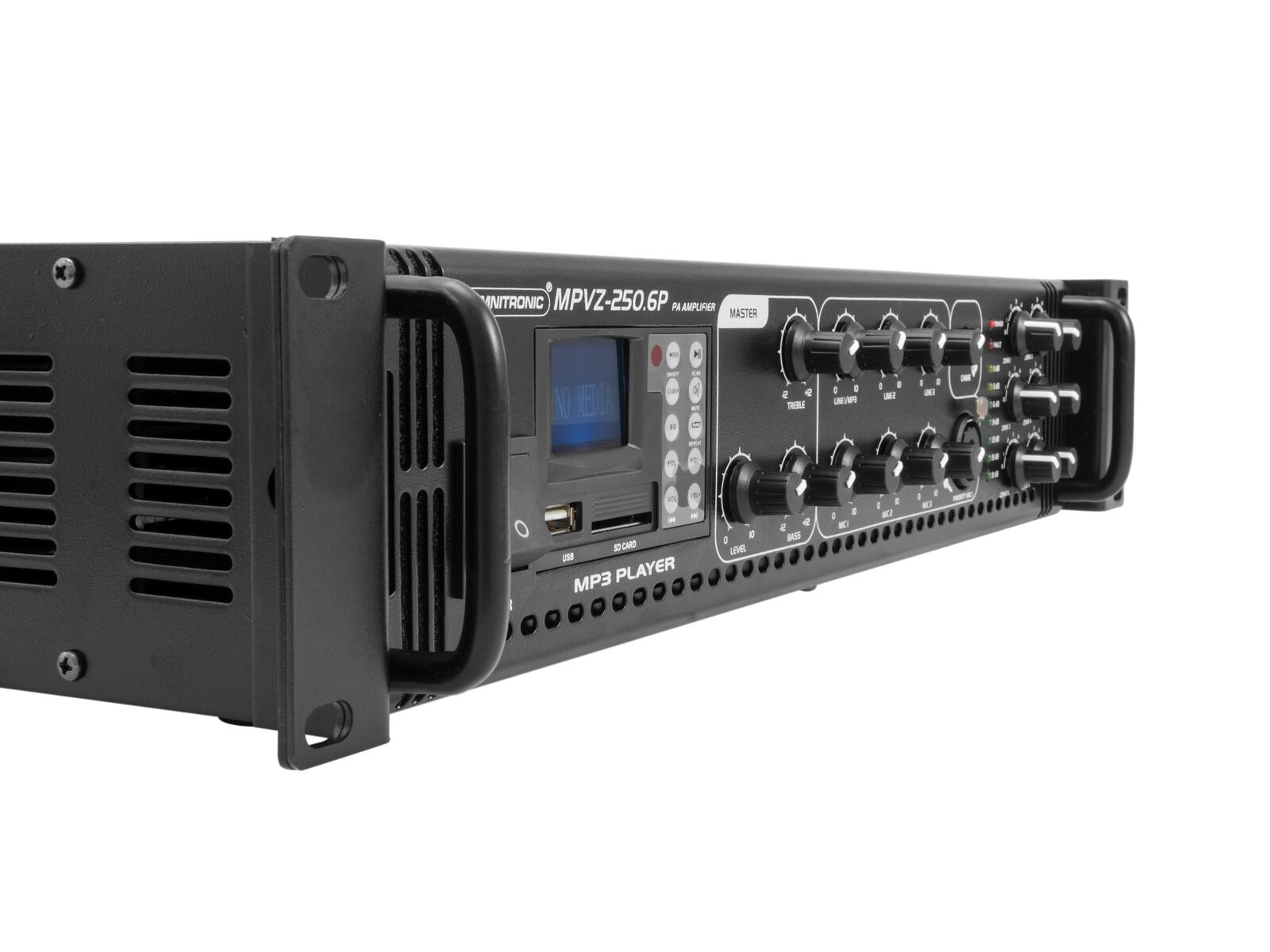 6-Zonen-ELA-Mischverstärker mit Audioplayer und IR-Fernbedienung, regelbare Zonen, 250 W RMS