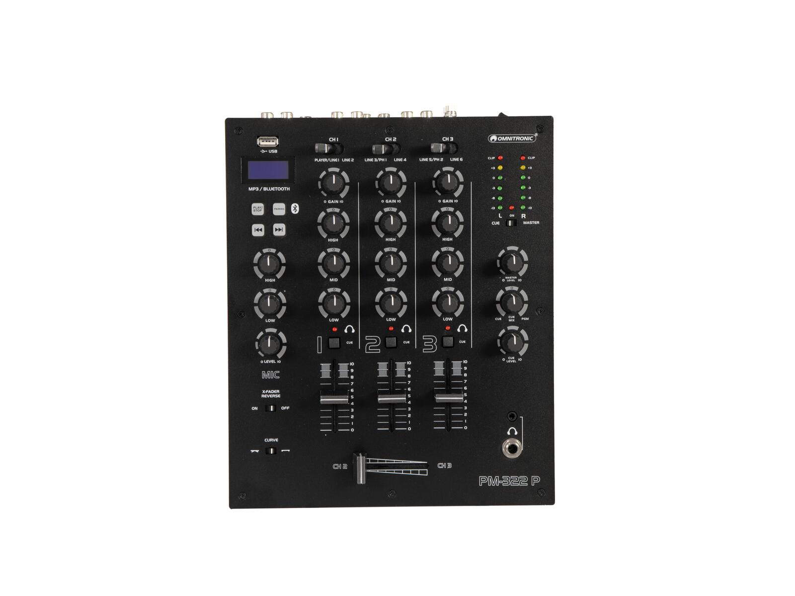 OMNITRONIC PM-322P 3-Kanal-DJ-Mixer mit Bluetooth und USB-Player
