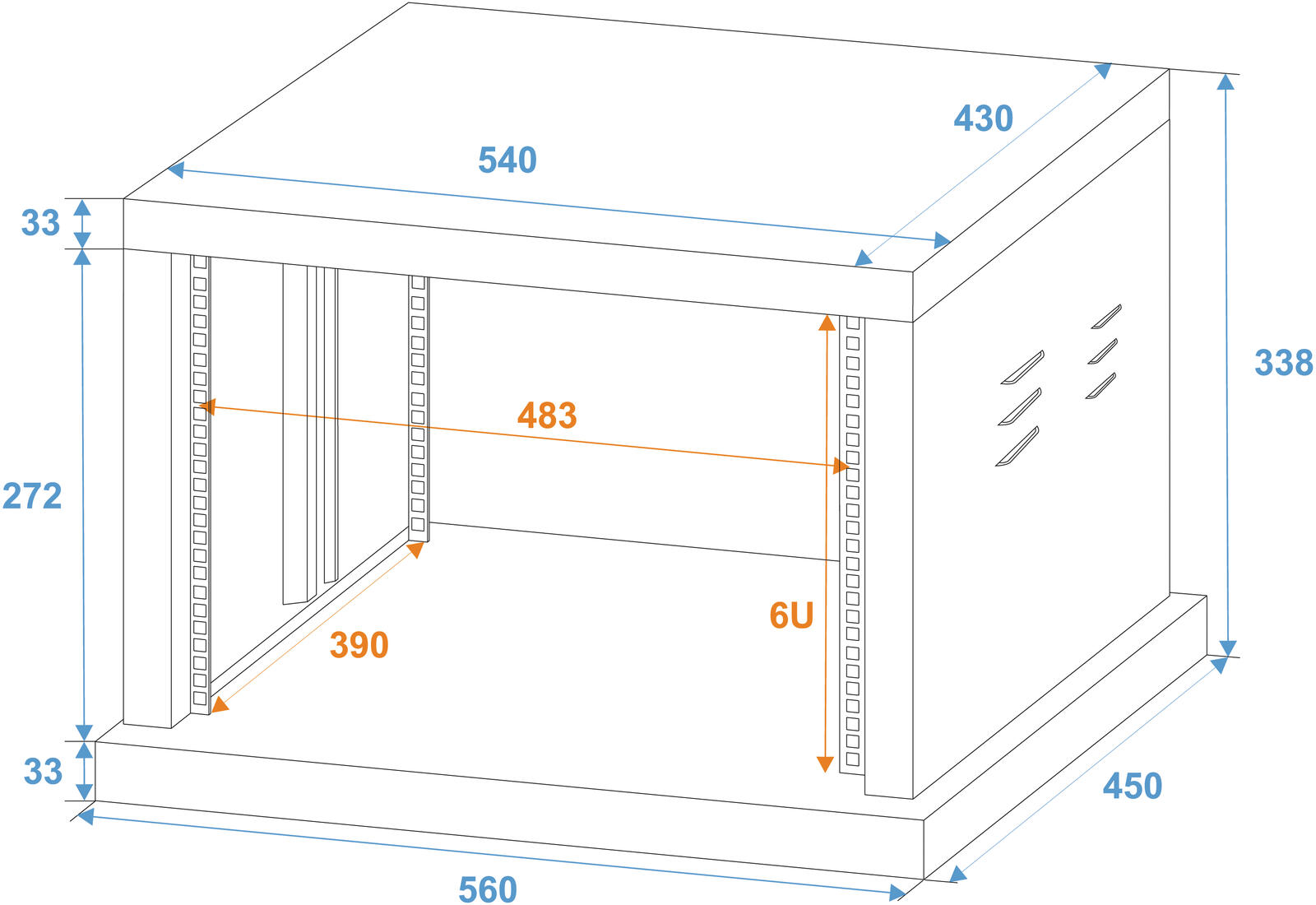- Gestanzte Rackschienen vorne und hinten