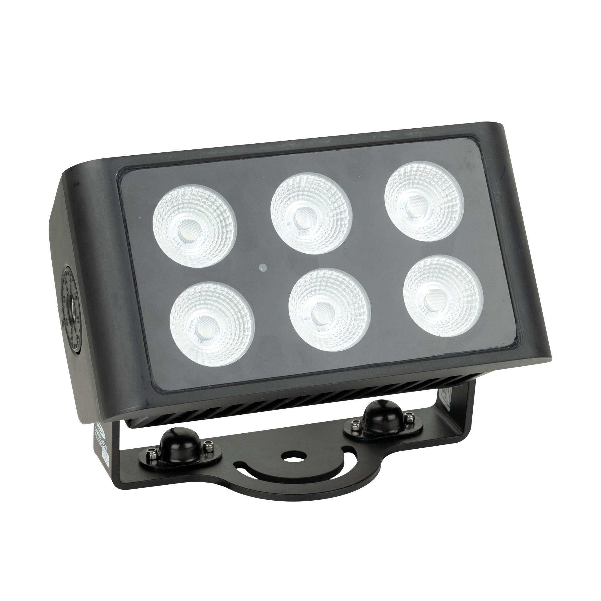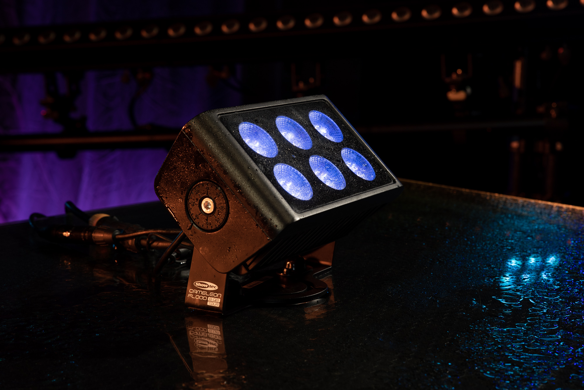 Der Showtec Cameleon Flood 6 Q6 Tour ist ein RGBWA-UV-LED-Fluter mit 6 LEDs mit je einer Leistung von 10 Watt. Dank der Schutzart IP65 kann er sowohl im Innen- als auch vorübergehend im Außenbereich verwendet werden. Durch den festen Strahlungswinkel von 40°, einen Dimmer von 0-100% und die Stroboskopeffekteffekte von 0-20 Hz ist dieser Scheinwerfer perfekt für die Farbmischung auf der Bühne geeignet. Der Cameleon Flood 6 Q6 Tour kann über DMX, im Master/Slave-Modus und mir IR-Fernbedienung manuell oder automatisch gesteuert werden. Für eine kinderleichte Bedienung verfügt er über zahlreiche voreingestellte Programme. Er ist mit Seetronic Power Pro True Stromanschlüssen der Schutzart IP65 ausgestattet, die mit allen gängigen Marken kompatibel sind. Eine Halterung zur einfachen Befestigung ist im Lieferumfang enthalten. Die Infrarot-Fernbedienung ist optional erhältlich.