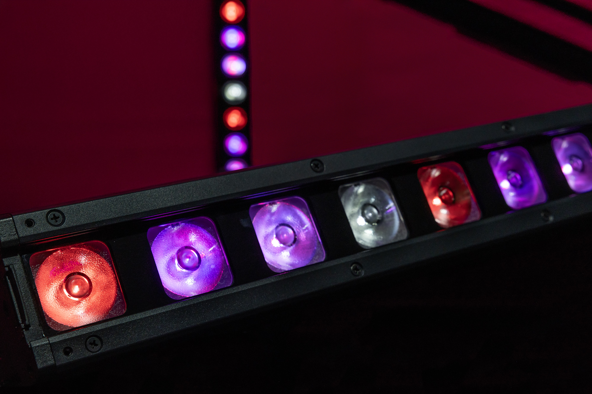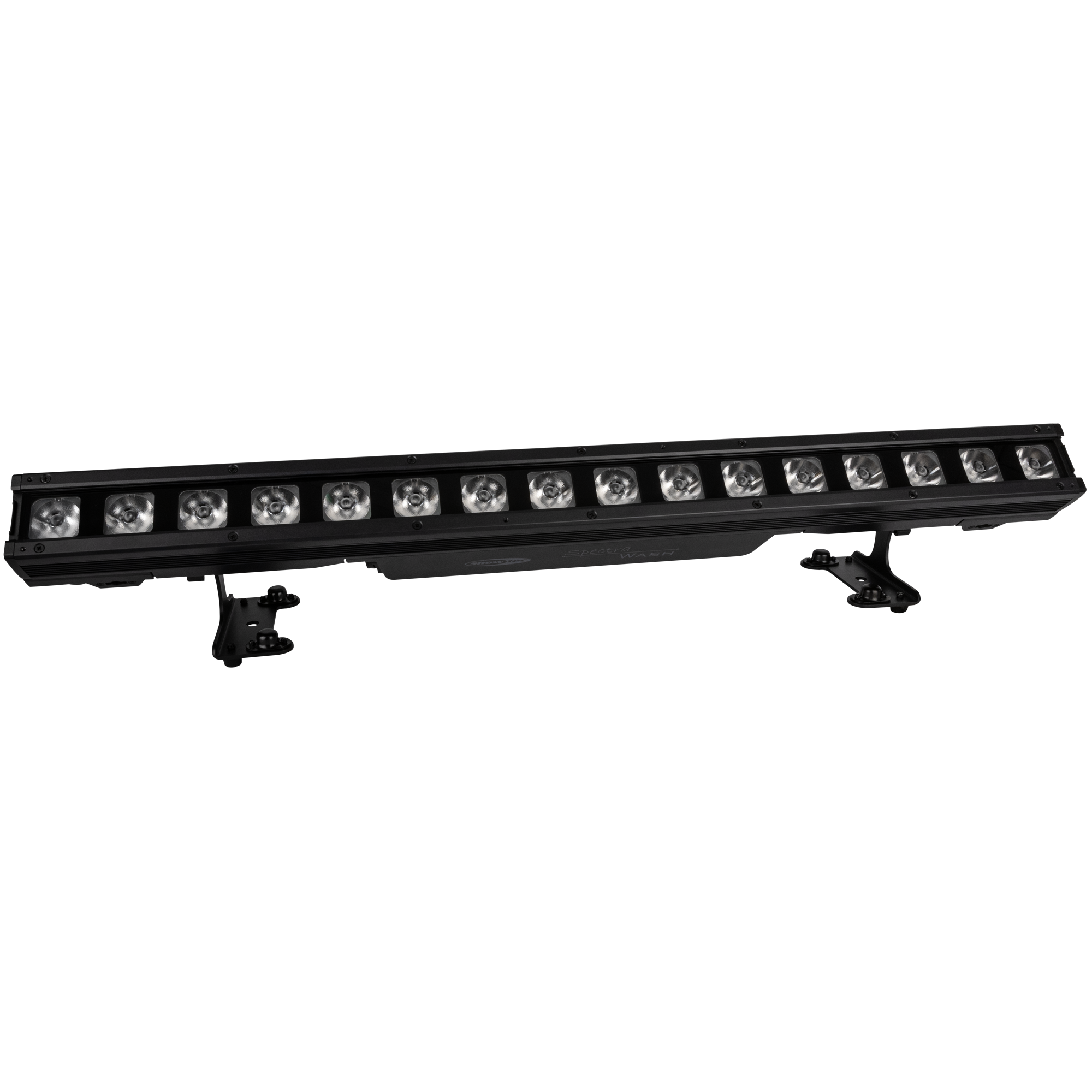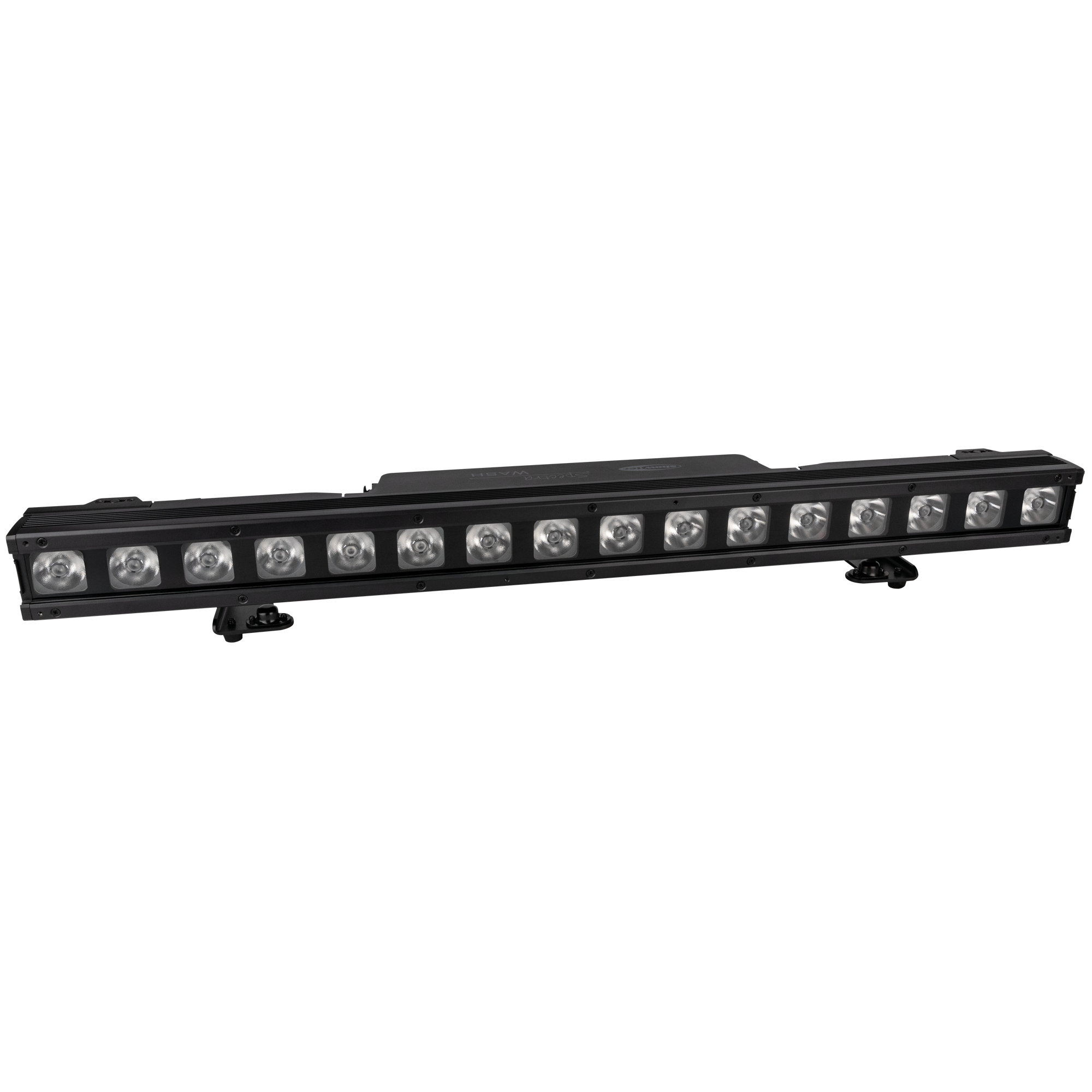 Der Showtec Spectra Wash ist eine 1 Meter lange, IP65-zertifizierte Wash-Leiste für den vorübergehenden Einsatz im Freien. Sie verfügt über 16 20W RGBW-LEDs, die kräftige und farbenfrohe Flash- und Wash-Effekte erzeugen. Jede einzelne LED kann über DMX gesteuert werden. Sie hat einen engen Abstrahlwinkel von 12° und nutzt die natürliche Konvektion zur Kühlung, wodurch sie völlig geräuschlos arbeitet. Mit den optional erhältlichen Beam Shapern können Sie den Strahlwinkel auf 15°, 25° oder 10° x 40° ändern.