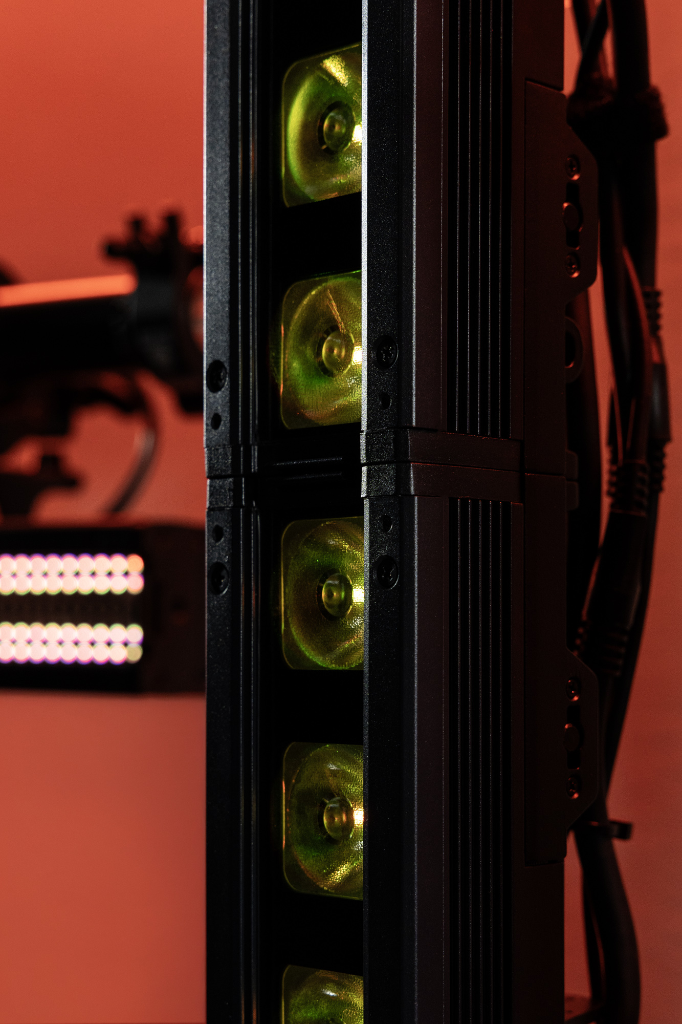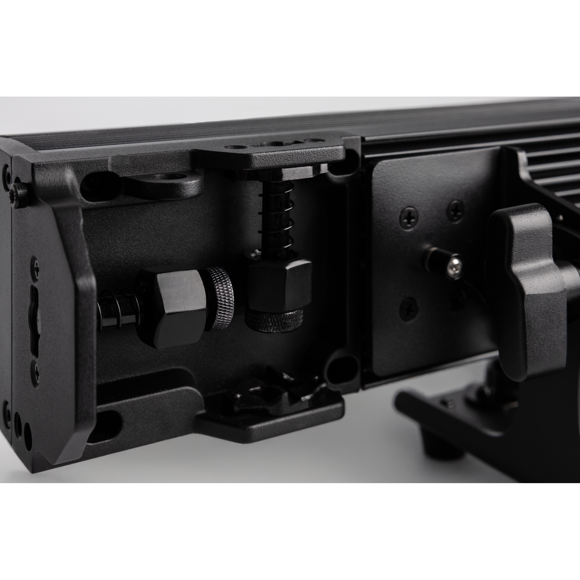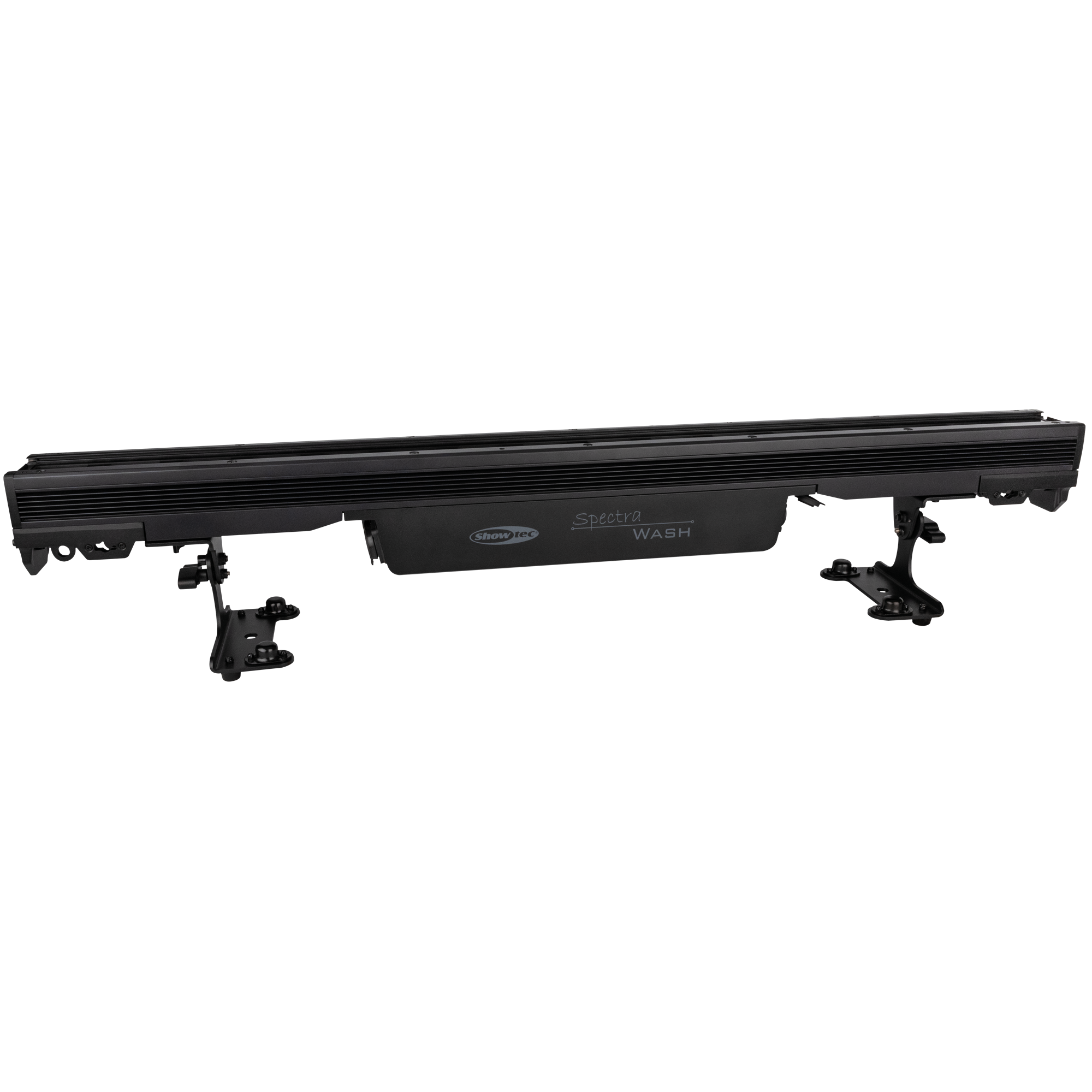 Der Spectra Wash läuft als Standalone-Gerät mit mehreren integrierten Voreinstellungen und Effekten, im Master/Slave-Modus und im 3-, 4-, 6-, 11-, 23-, 32-, 64- und 71-Kanal-DMX-Modus mit RDM-Unterstützung. Mit dem Schnellverschlusssystem können Sie problemlos mehrere Einheiten in horizontaler oder vertikaler Richtung verbinden oder die LED-Leiste horizontal unter einer Traverse aufhängen. Für die vertikale Montage ist die optionale vertikale Halterung für die Showtec Spectra-Serie erforderlich. Mit der optionalen Grundplatte für die Showtec Spectra-Serie und einer vertikalen Halterung können Sie bis zu zwei Spectra-Scheinwerfer vertikal auf dem Bühnenboden stapeln. Es ist auch möglich, zwei LED-Leisten übereinander zu stapeln oder sie mit dem Schnellverschluss-System am Showtec Spectra Stroboskop zu befestigen. Es sind zwei Schnellverschlusshalterungen und ein Power Pro True-Kabel im Lieferumfang enthalten. Barndoors sind optional erhältlich.