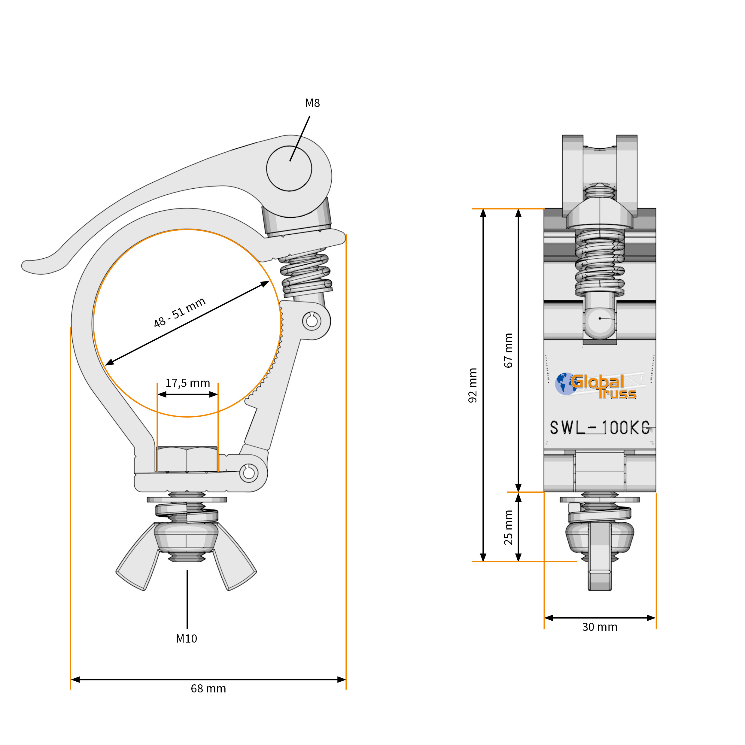 Die Vorteile des 812 Hook Quick liegen auf der Hand. Die Handlichkeit und schlanke Bauform eines 812ers gepaart mit der Möglichkeit eines einfachen Einhängens wie bei einem klassischen Haken. Mit dem Schnellverschluss geht die Montage unglaublich schnell und einfach von der Hand. Wie alle Coupler der 812 Serie ist der 812 Hook Quick für kleine und mittlere Geräte eine optimale Lösung. Dabei besticht der 812 Hook Quick mit der gewohnten Global Truss Qualität und Zuverlässigkeit.