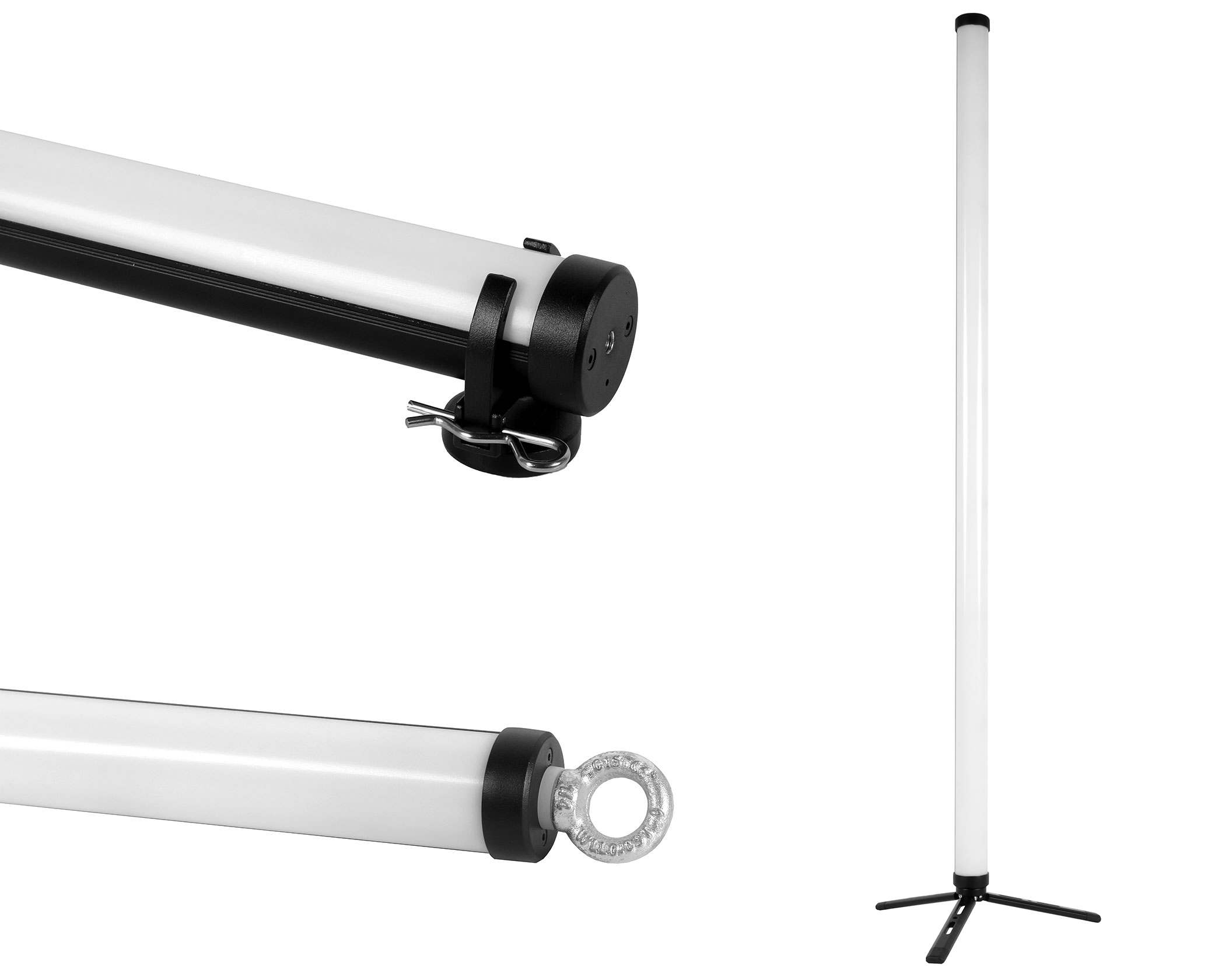Dank IP65-Schutz ist die Tube indoor wie outdoor einsetzbar. Die Steuerung erfolgt flexibel per Vision Control App via Mesh-Netzwerk, über CRMX (Lumen Radio) oder manuell über das Display ? ideal für schnelle Setups und mobile Anwendungen. Effekte, Gruppensteuerung, Positionierung und Farbwahl lassen sich direkt in der App konfigurieren.