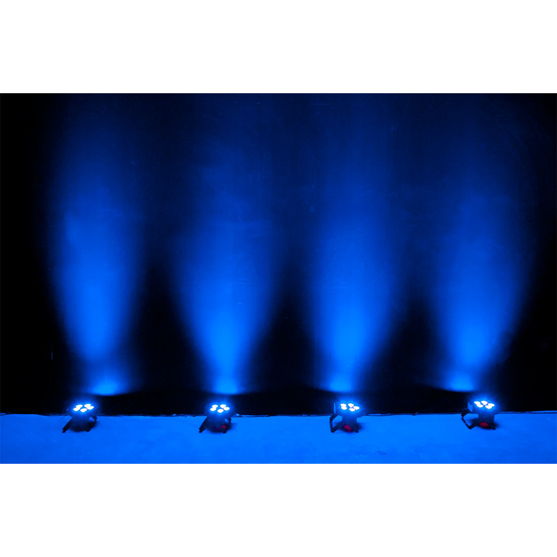 - Ultra bright slim flat black Par with 5x 4-Watt, 4-IN-1 QUAD LEDs (RGBA) – casts no RGB shadows