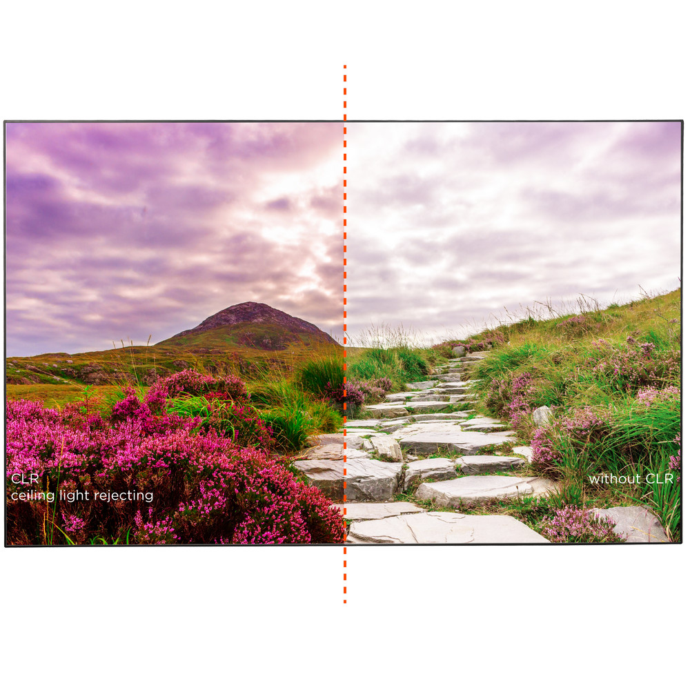 Unsere CLR Rahmenleinwand V2.0 verbindet die Vorteile aktueller Displays mit der Größe einer Projektions-Leinwand. Das speziell entwickelte, mehrschichtige Projektionstuch sorgt unter Tages- bzw. Restlichtbedingungen (ambient light) für bisher nicht dagewesenen Kontrast, Schwarzwert, Helligkeit und lebendige Farben.