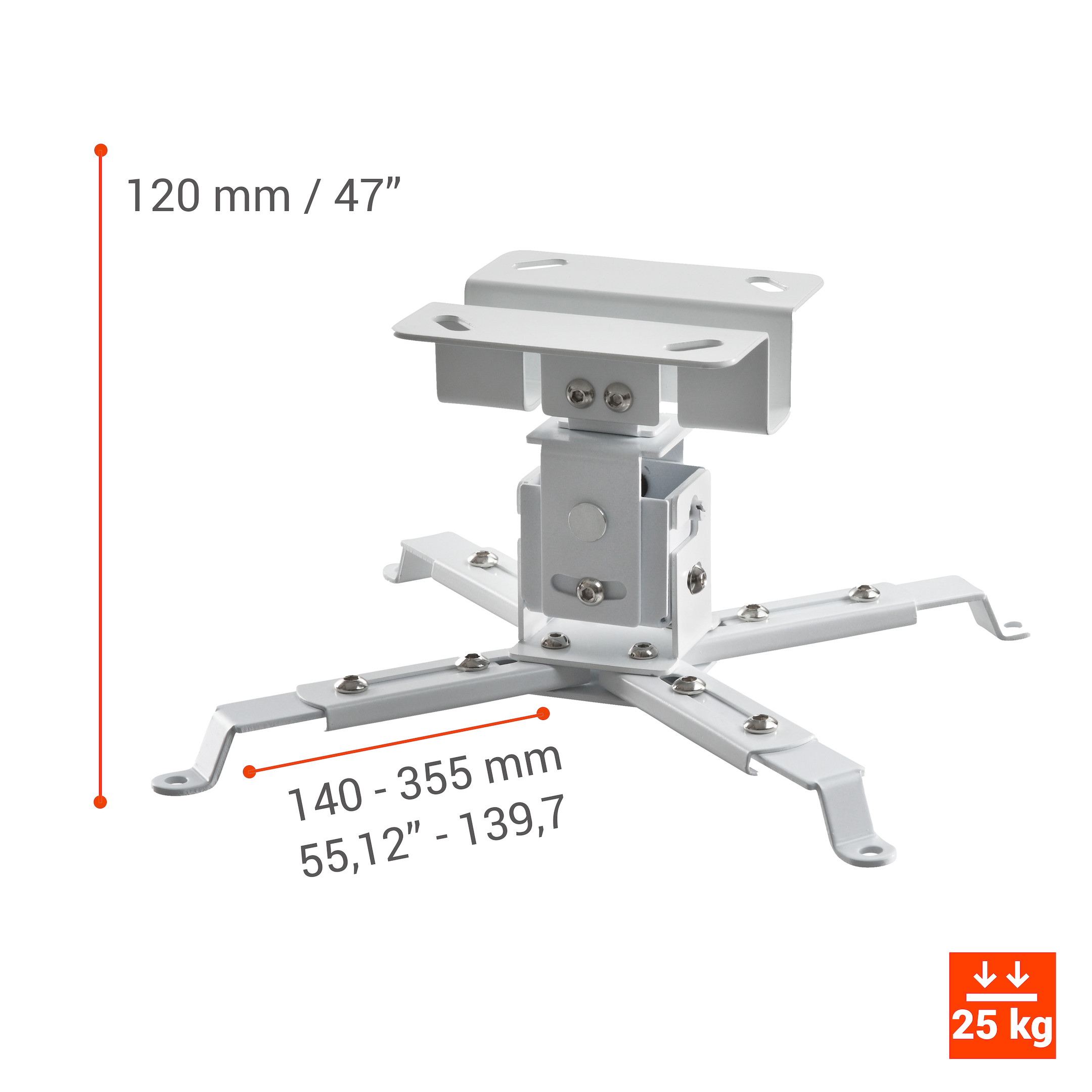 Die Halterung trägt Beamer mit einem Gewicht von bis zu 25kg und ist mit 99% aller Beamer kompatibel. Sollte dies einmal nicht der Fall sein, können Sie das Produkt einfach und kostenlos umtauschen.