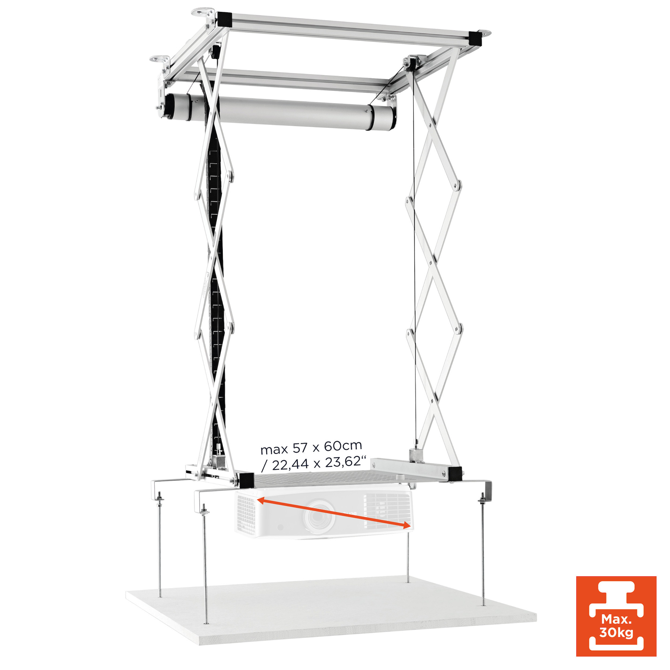 - max. Projektorabmessungen 57cm x 60cm (BxT)