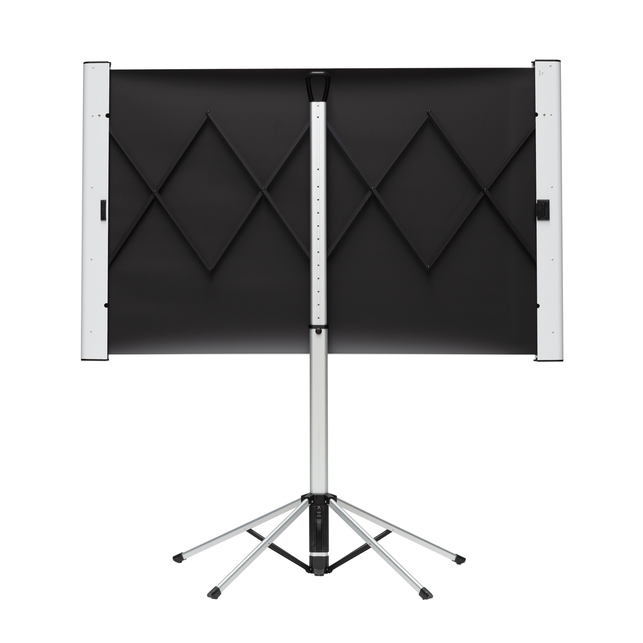 Unsere Dual-Format Stative bieten ein 4k-taugliches Front-Projektionstuch auf PET-Basis, gute Farbreproduktion, Planlage und enorme Standsicherheit. Die integrierte Führungsmechanik und das rückseitige Scherengelenk lassen die Leinwand sicher im gewünschten Format einrasten. Im eingefahrenen Zustand ist sie unauffällig zu verstauen oder zu transportieren.