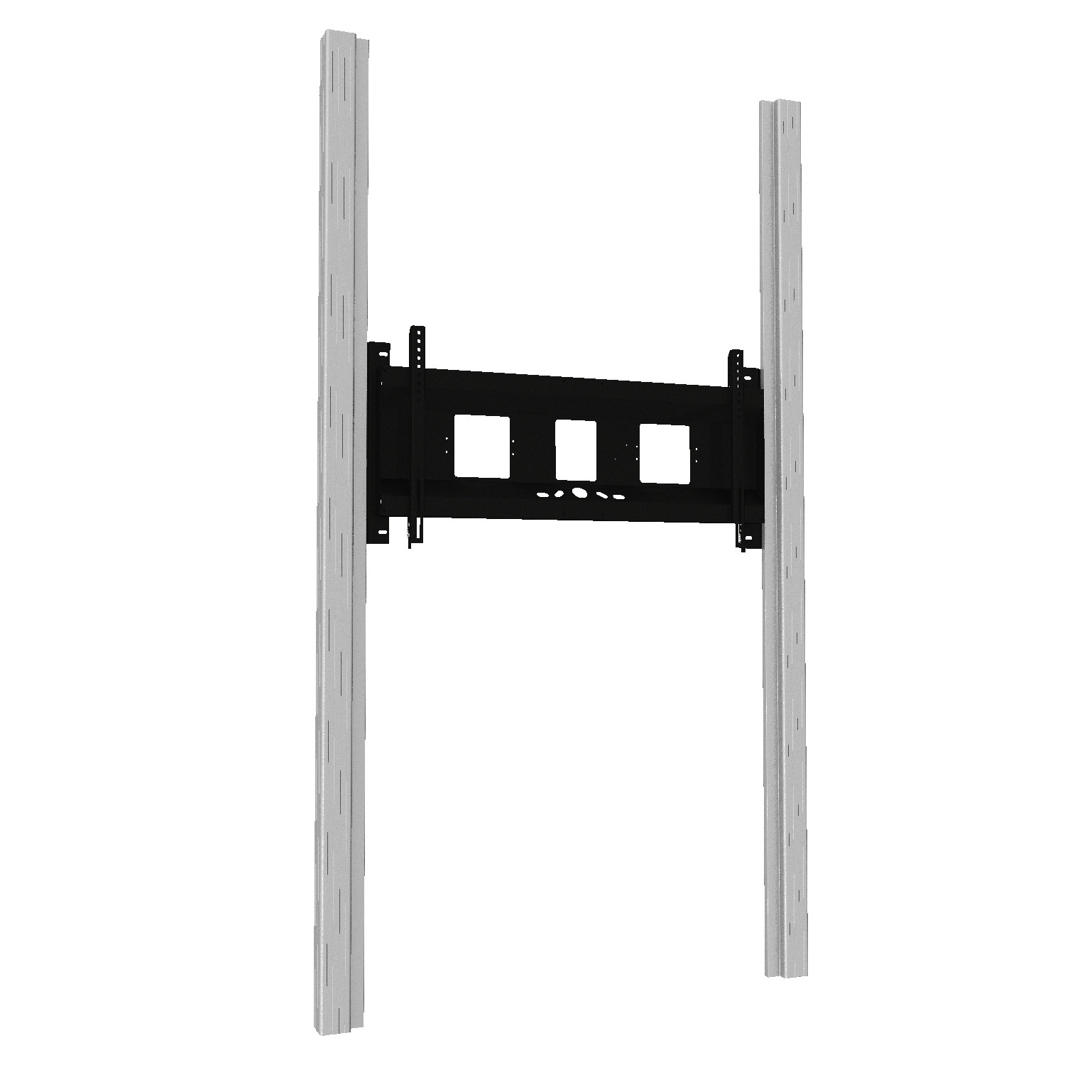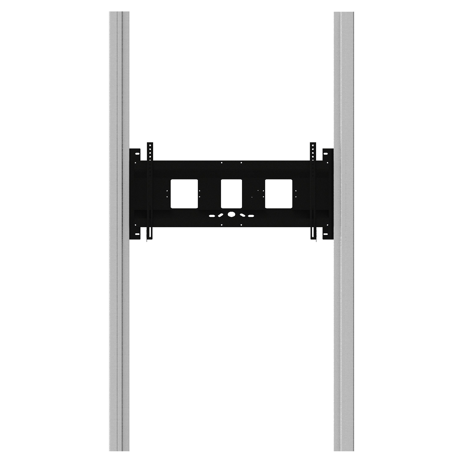 Die große Displayaufnahme mit max. VESA 1200 x 600 besteht aus 2 mm pulverbeschichtetem Stahl. Am Rahmen können Steckdosenleisten, Mini-PCs inkl. Halterung oder Kameras montiert werden und dank des Kabelmanagements hängen keine Kabel am System runter.
