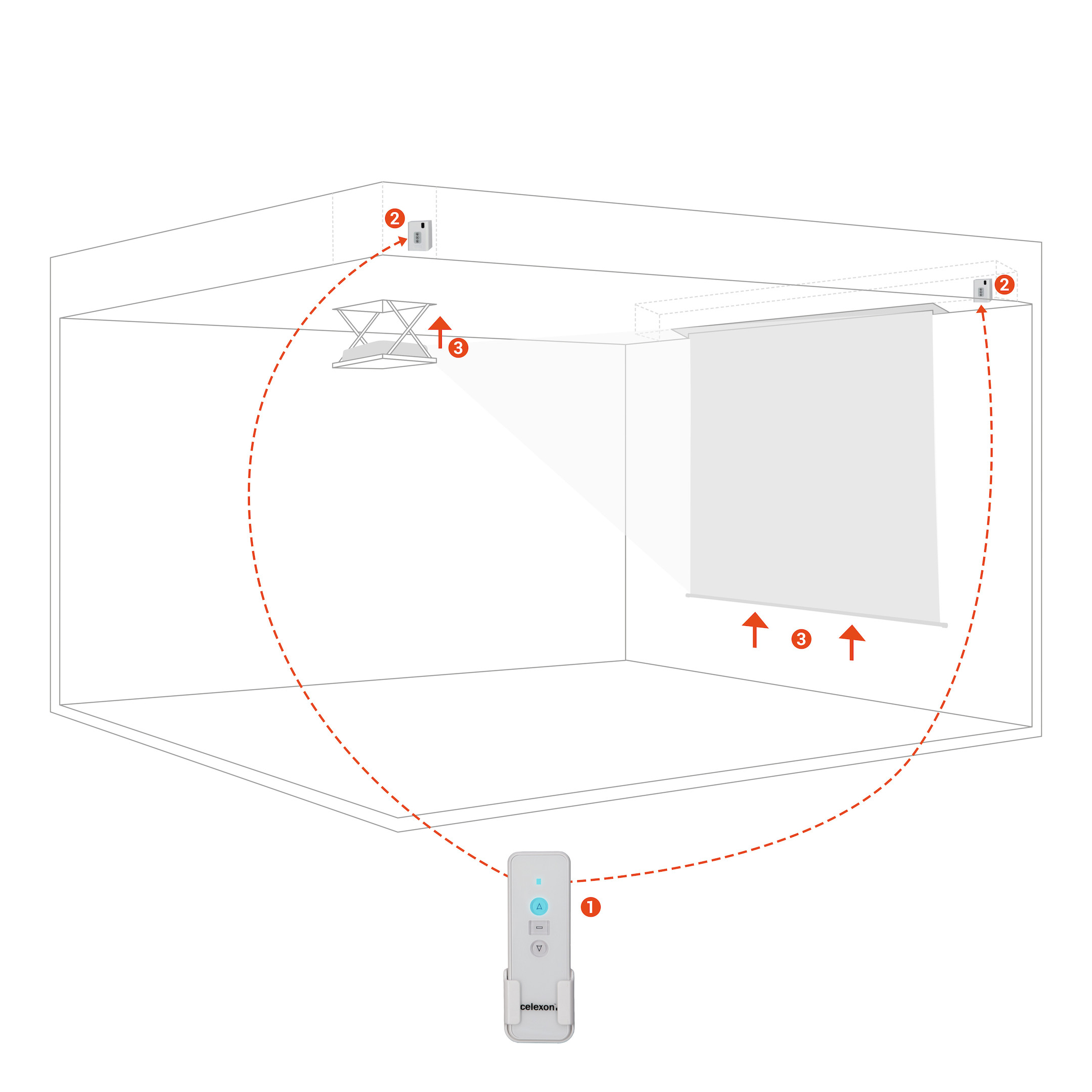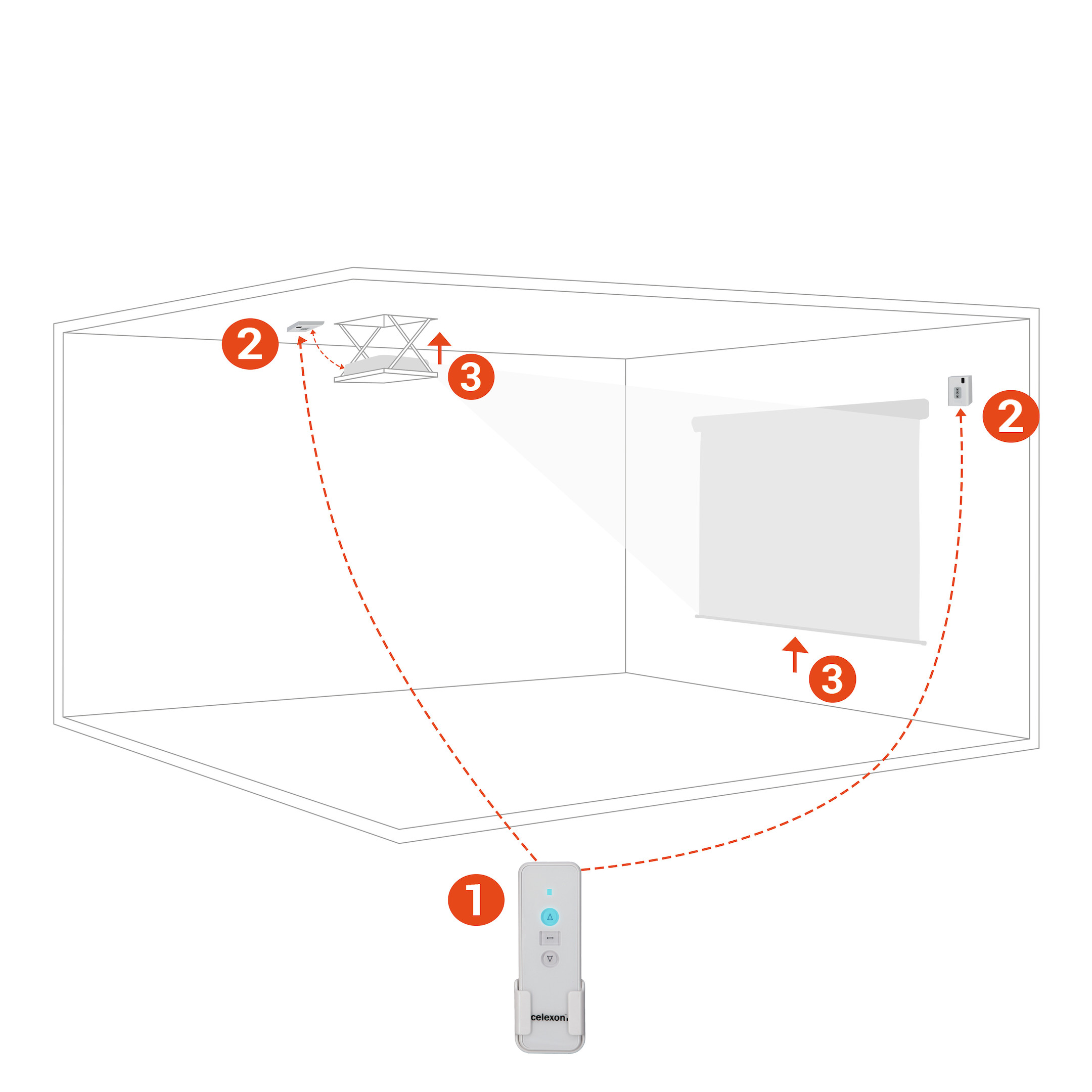 Mit dem celexon Professional Funksystemen kontrollieren Sie Ihre Motor-Leinwand oder Deckenlift ohne Sende- oder Empfangsstörungen sogar durch Mauerwerk.