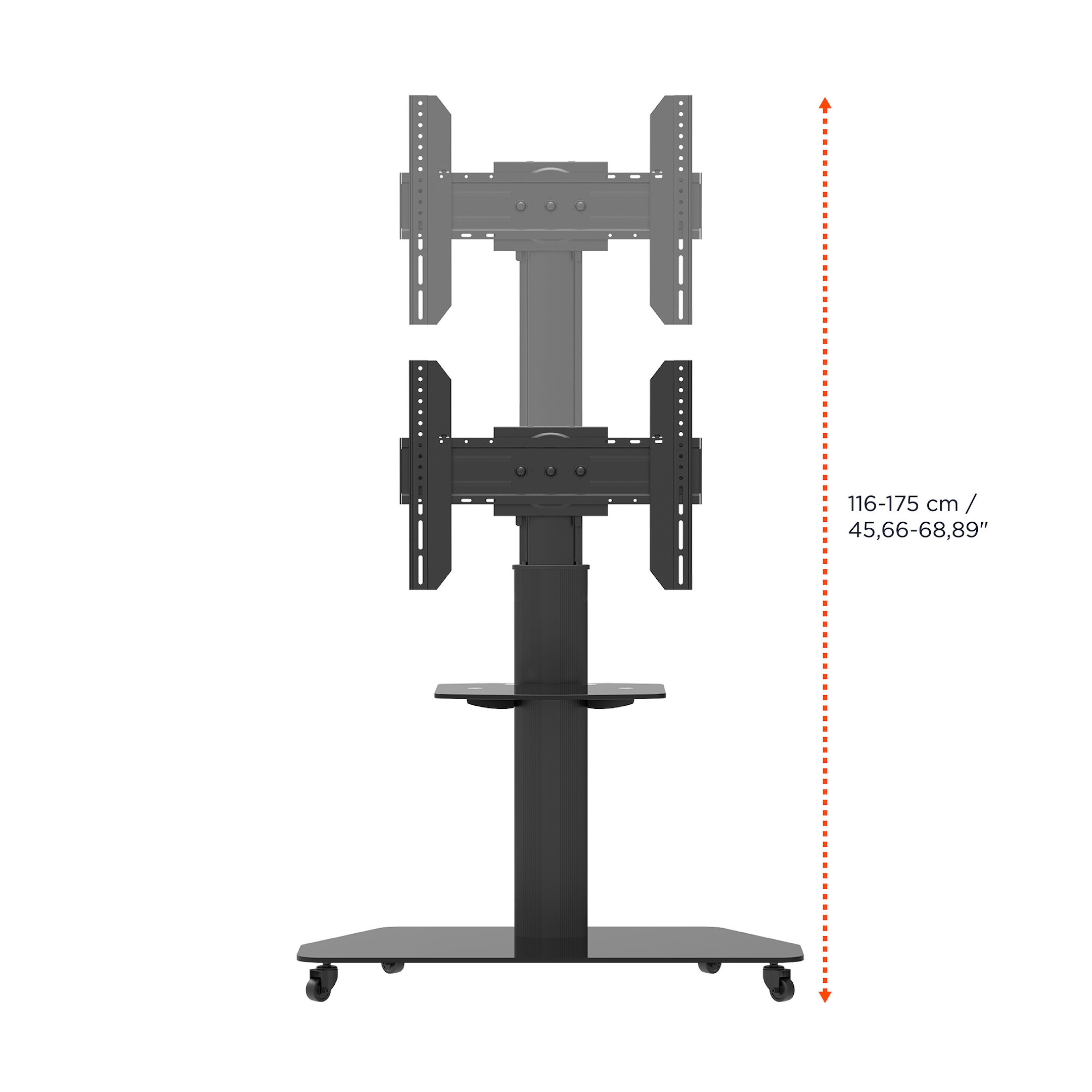 Der celexon Professional höhenverstellbarer Display Rollwagen Adjust-3770MP mit einer Traglast von bis zu 50 kg eignet sich perfekt zum Einsatz in verschiedenen Räumen und nimmt dabei Displays aller gängigen Anbieter auf. Die Höhe kann von 116 - 175 cm eingestellt werden.