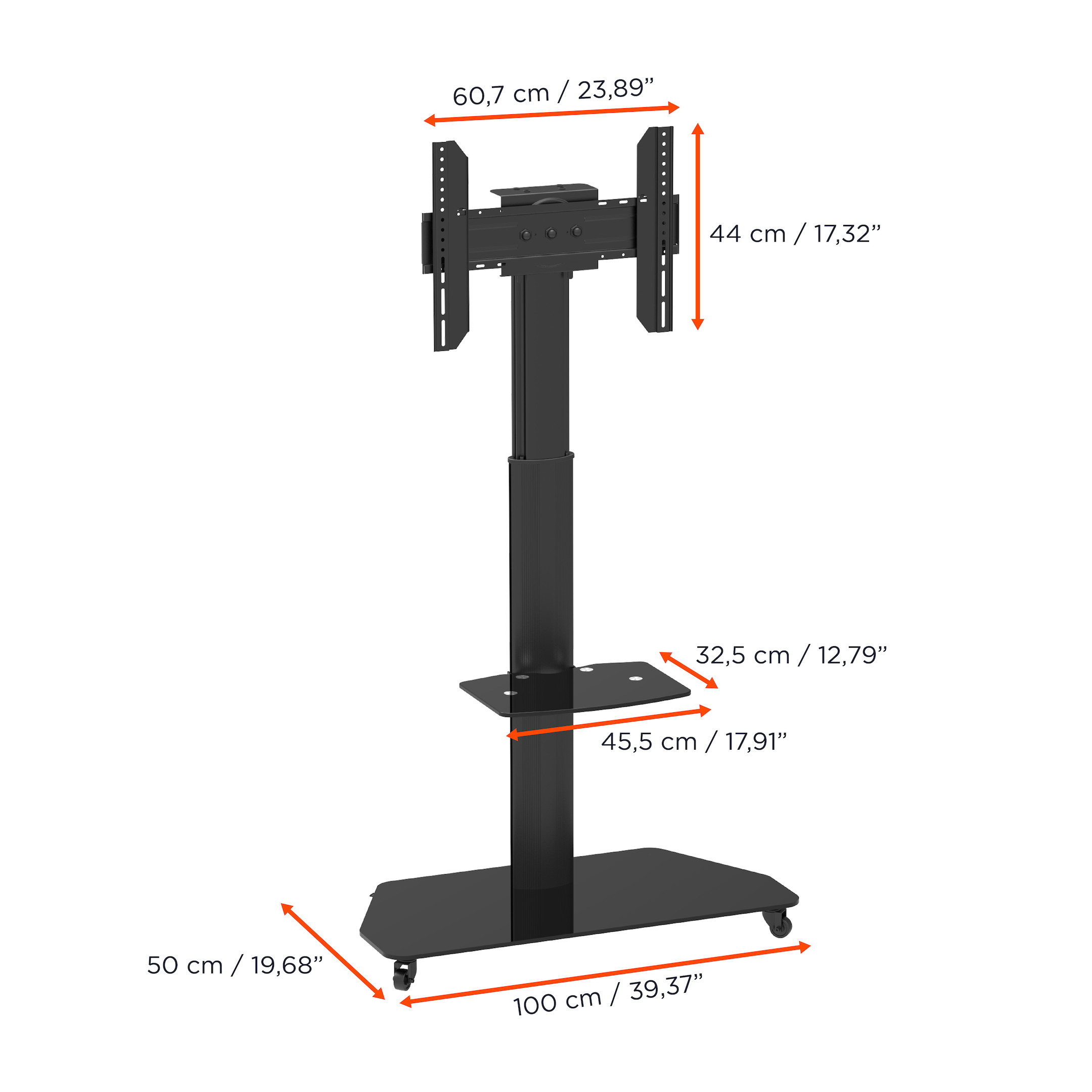 Dieser Rollwagen bieten enormen Verwendung-Komfort dank einer Glas-Ablageplatte und integriertem, rückseitigem Kabelmanagement-System.