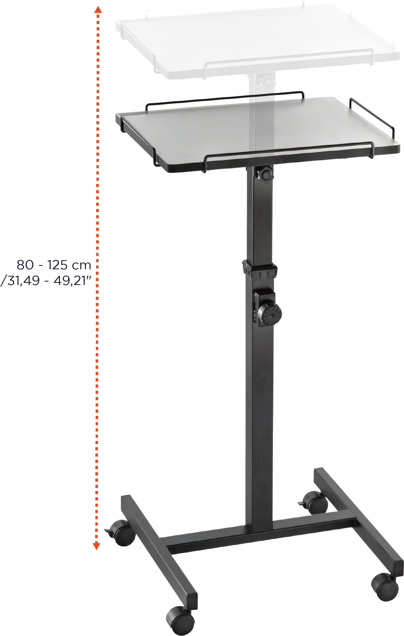 Der PT2000 eignet sich besonders für den flexiblen Einsatz bei Meetings, im Klassenzimmer, Vorführräumen etc. Durch seine 4 Rollen und die einstellbare Arbeitshöhe lässt sich der Tisch für nahezu jeden Zweck nutzen und einfach bewegen.