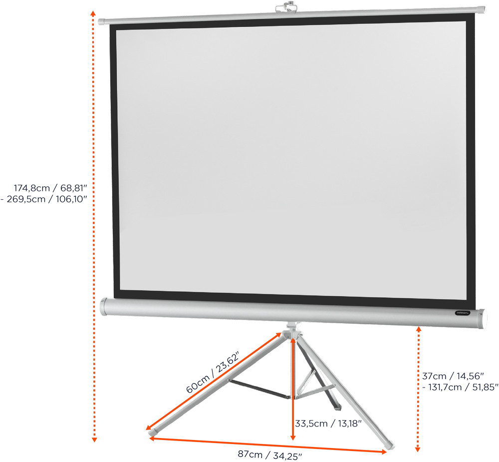 - Oberkante Leinwand: min. 175 cm - max. 269,5 cm