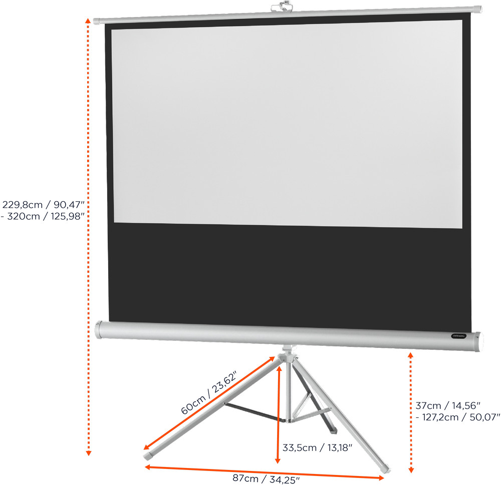 Aufgrund des robusten Dreibeinigen-Stativ-Fußes ist das Produkt für den täglichen Einsatz geeignet. Durch die automatische Tuchspannung während des Aufbaus, ist stets eine optimale Planlage gegeben.