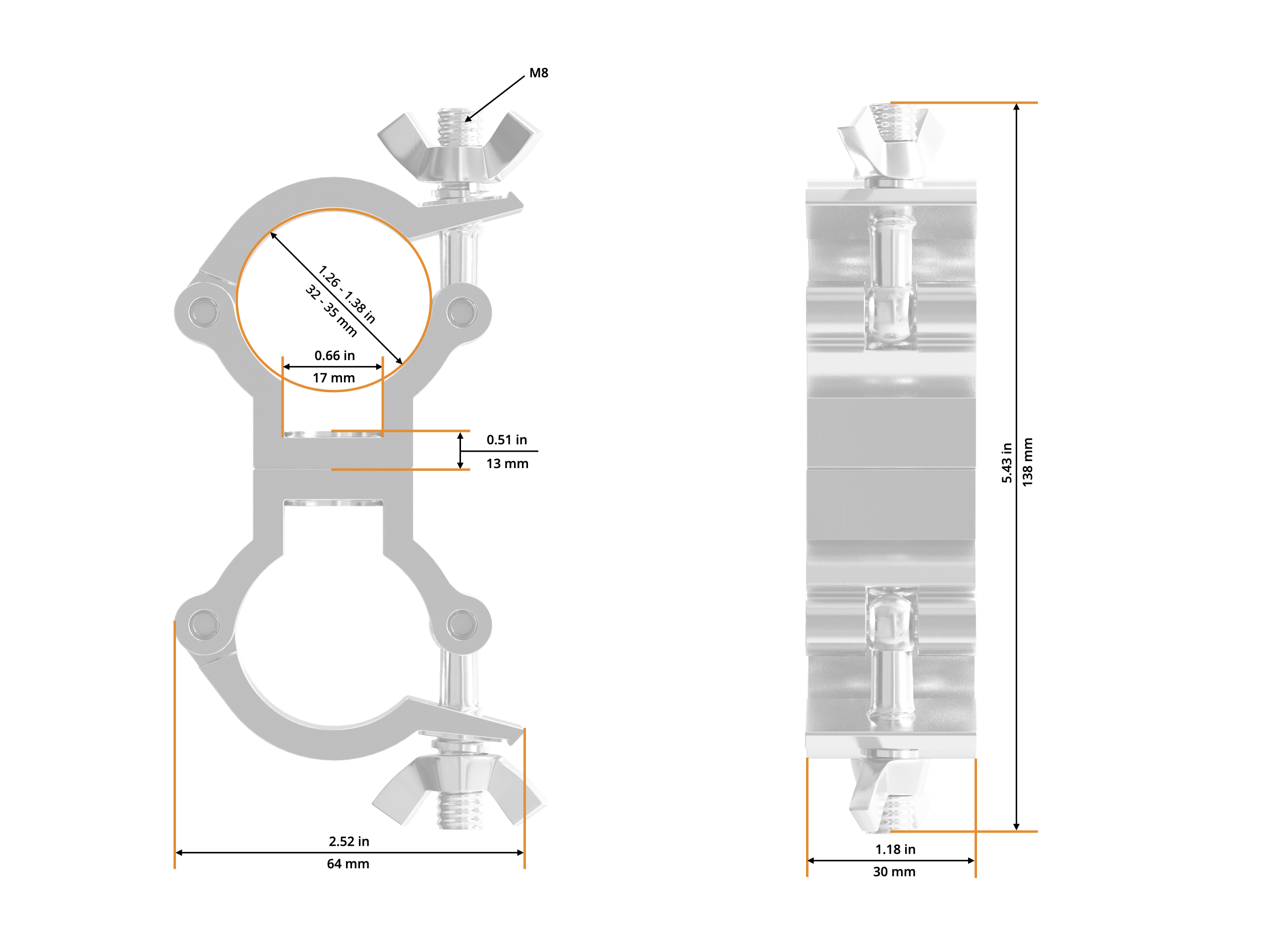 - Clasp M8 wing nut