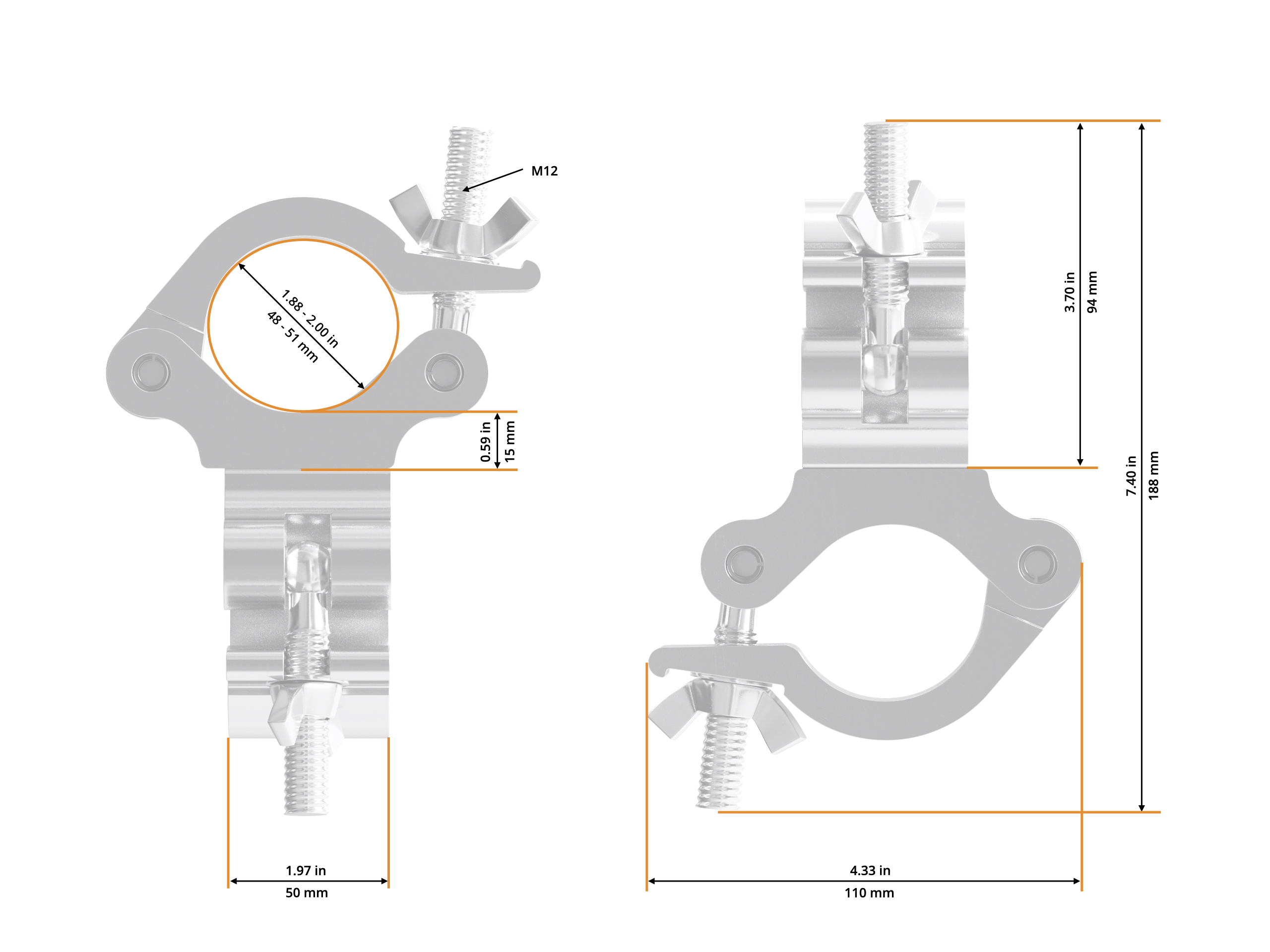 - Clasp M12 wing nut