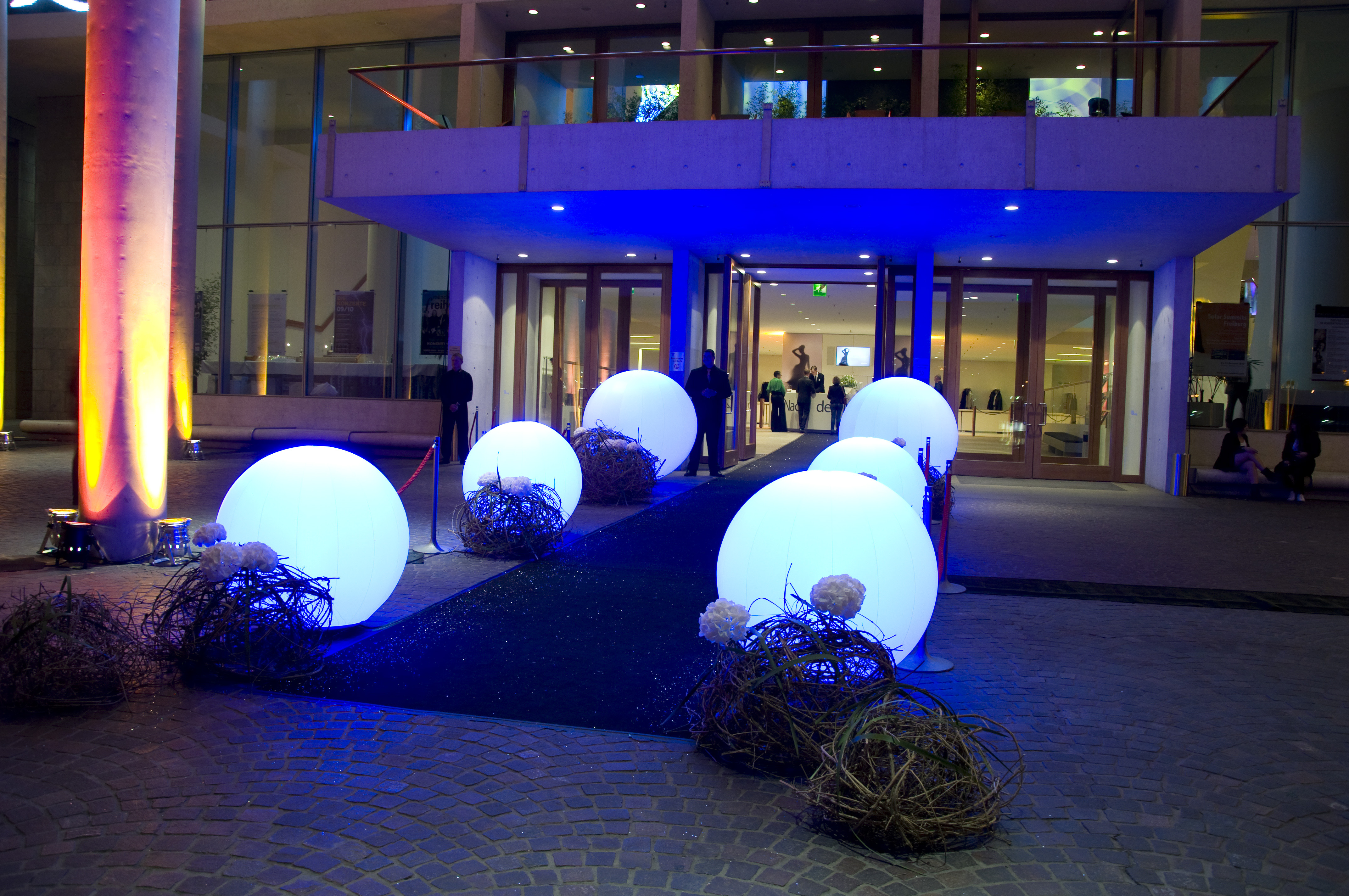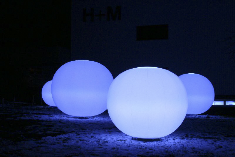 The light sculpture GLOBE is an excellent means of decoration, lighting or as eyecatcher. The shapely decorative element is suitable for indoor and outdoor use and is set up with an integrated Flüsterventilator. GLOBE is available in different sizes.