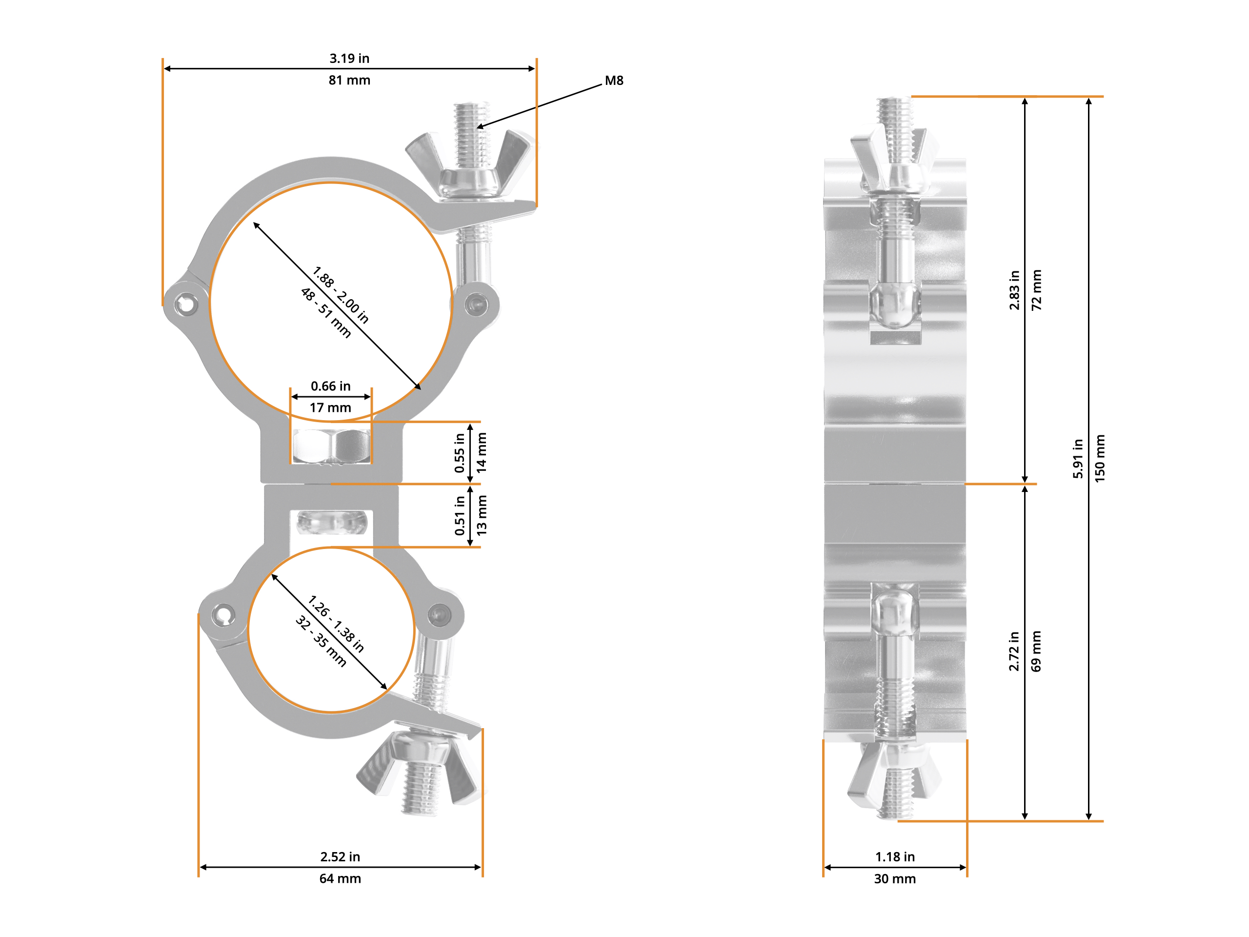 - Clasp M8 wing nut