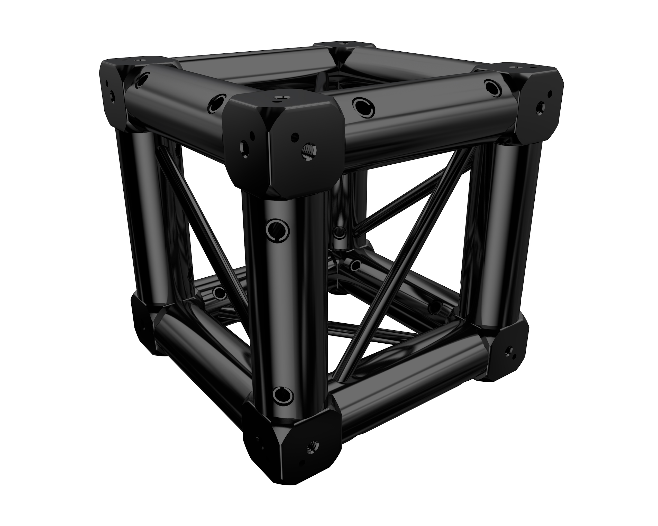 The F14 truss is built with 20 x 2mm main tubes and 6mm diagonal braces of aluminium, whilst the extra end frame improves the stability of the truss. The truss lengths are connected with the included conical connectors. This truss and all other Global Truss series can be powder coated in every RAL colour.